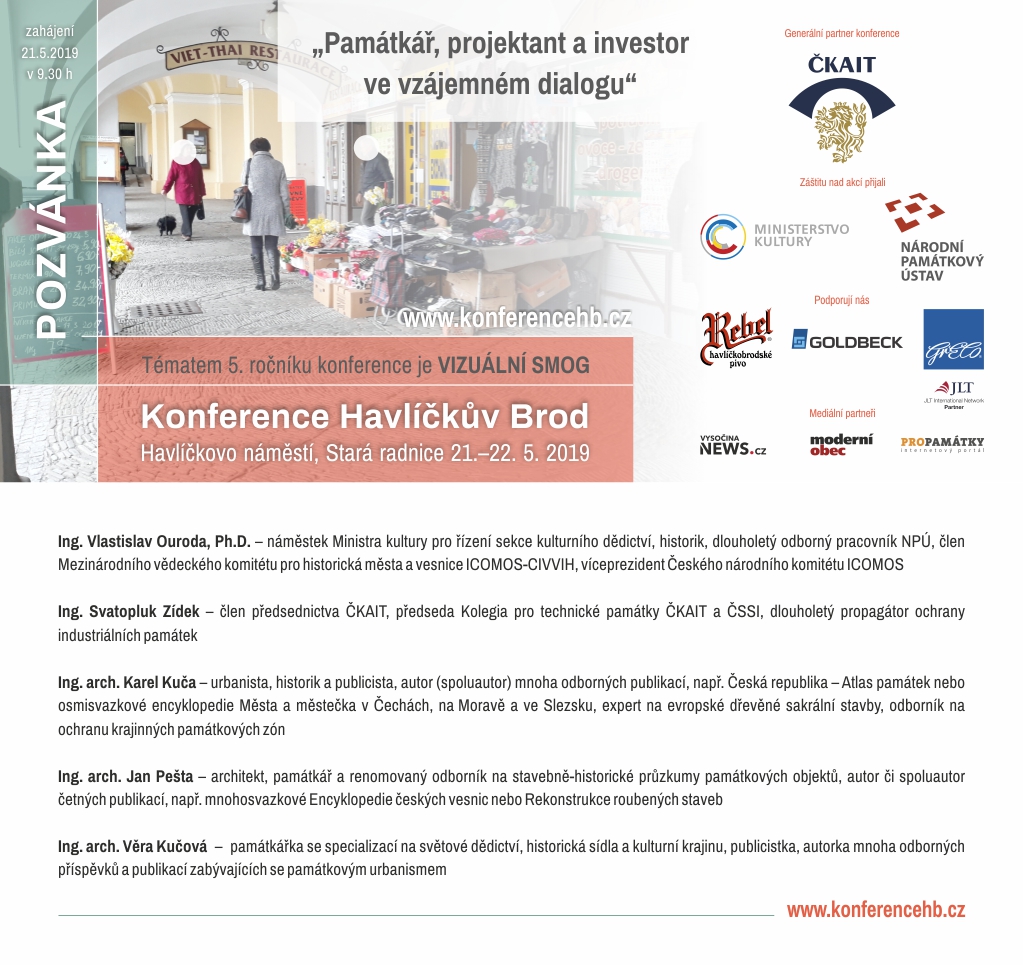 Na konferenci vystoupí a budou diskutovat významní čeští památkáři, projektanti i architekti, mezi nimi například Vlastislav Ouroda, Svatopluk Zídek, Jan Pešta, Karel Kuča, Věra Kučová a další. Na dvoudenním jednání se bude hovořit o potřebě vedení vzájemného dialogu mezi památkářem, projektantem a investorem v procesu přípravy i následné realizace vlastních rekonstrukcí památkových objektů, dále pak o podmínkách při umisťování nových staveb v chráněných a hodnotných lokalitách, případně o samotných úpravách veřejných prostranství situovaných v oblastech celospolečenského zájmu.