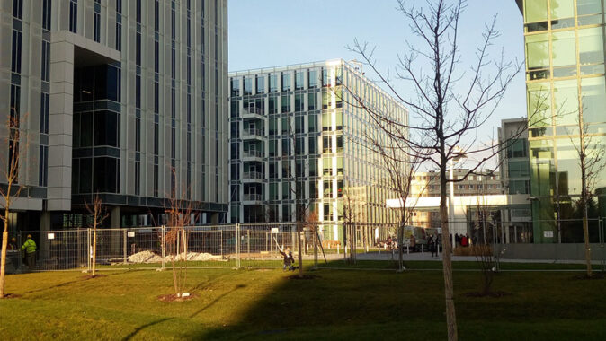 dokončila řešení centrálního prostoru. Nové budovy mají dobrou architektonickou