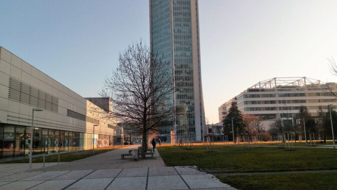 administrativní budovy dosahují výšku těsně nad 100 metrů, zbývající jsou 8 až