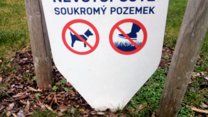plochách uvnitř bloku se objevily cedulky s nápisem “nevstupovat soukromý