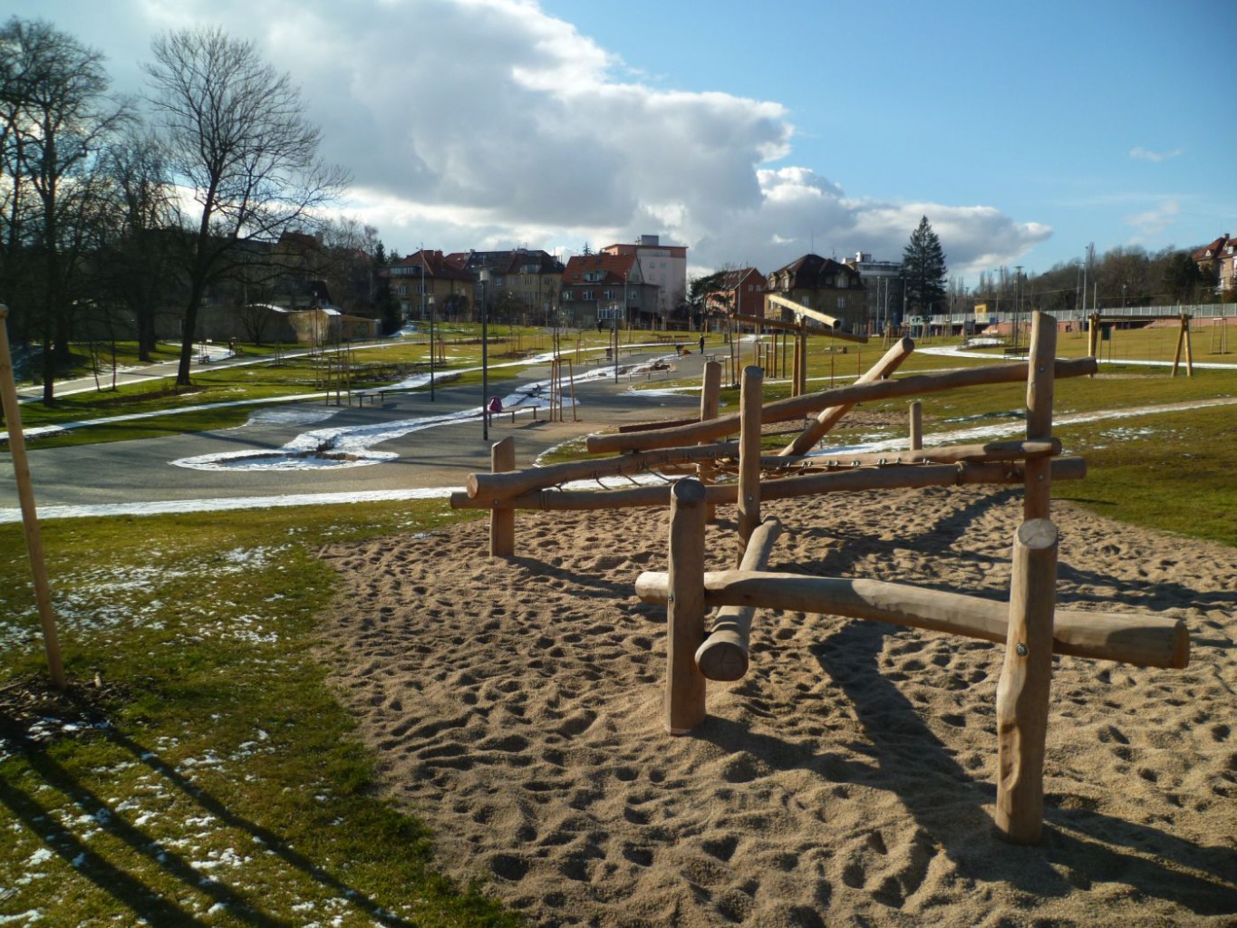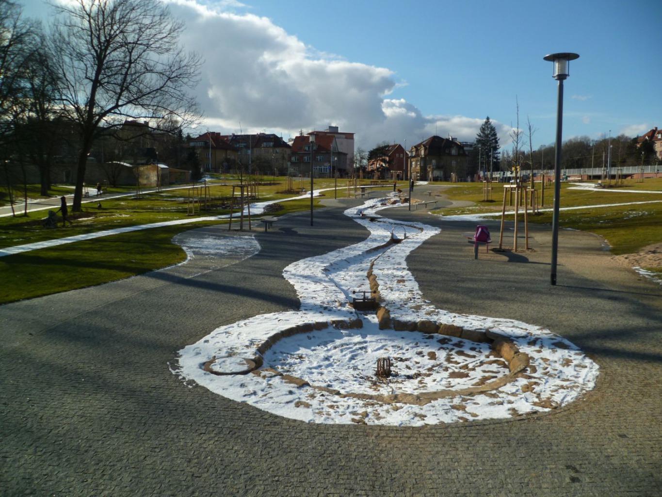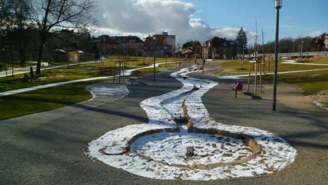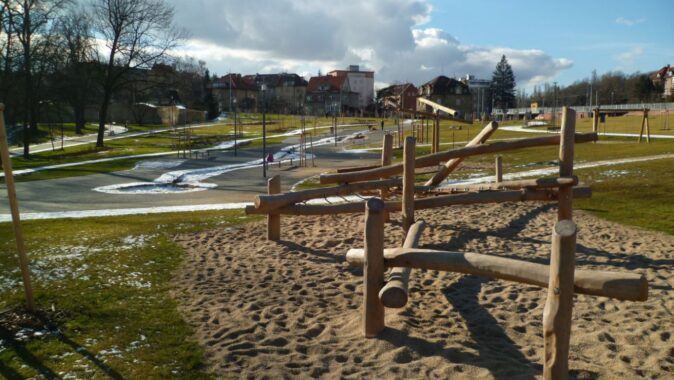 původního potoka Brusnice, doplněný atrakcemi pro děti. Okrajová cesta z živice
