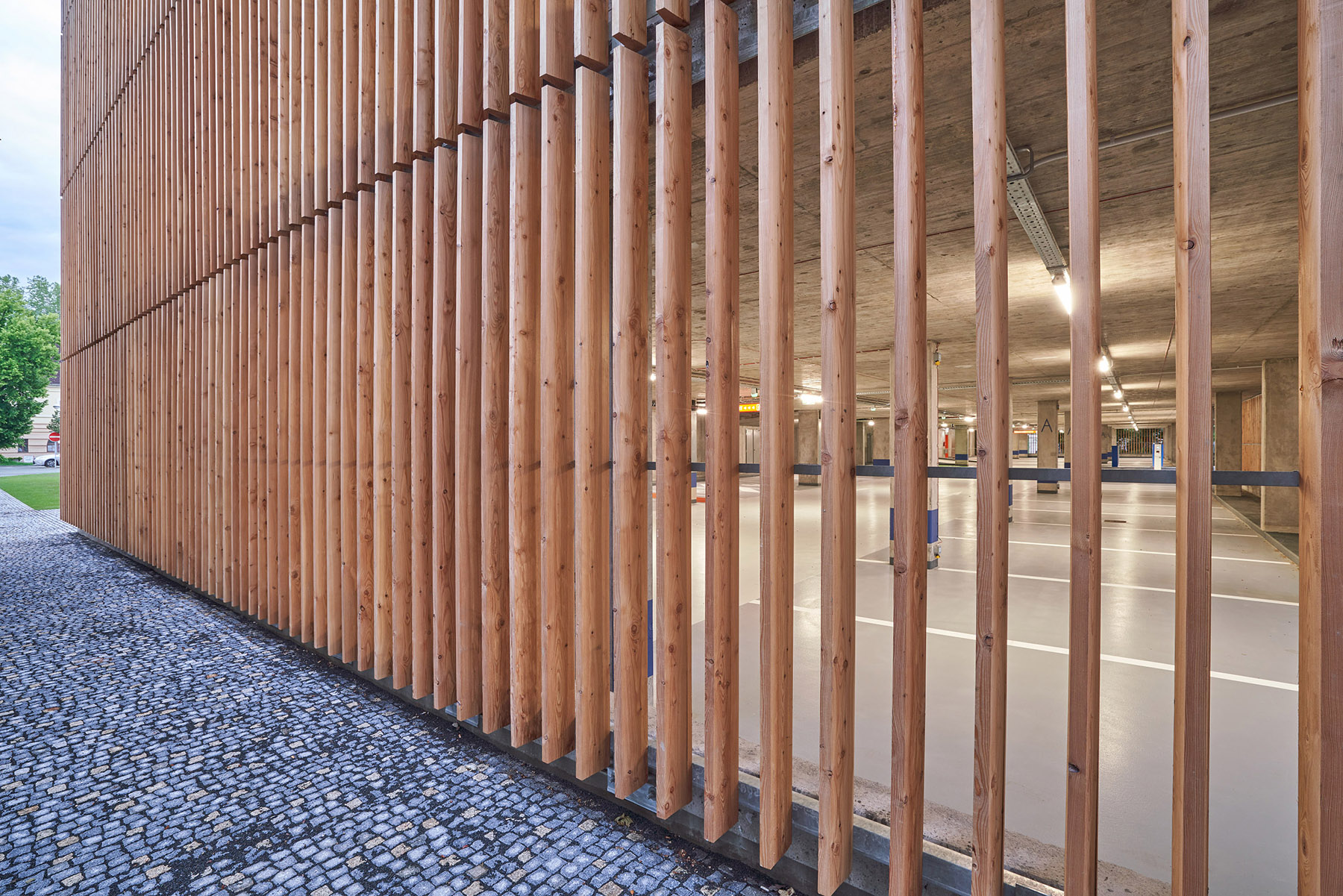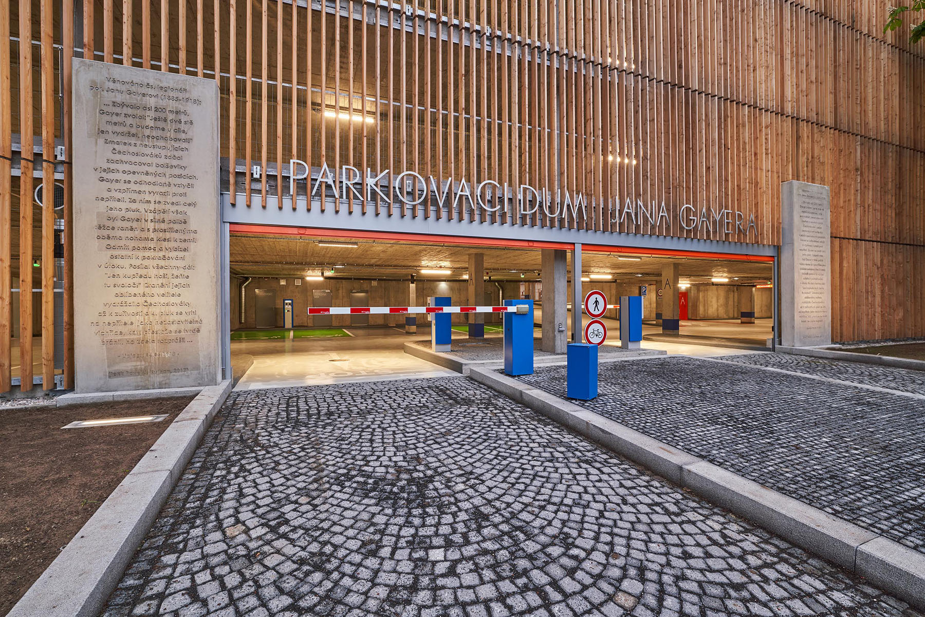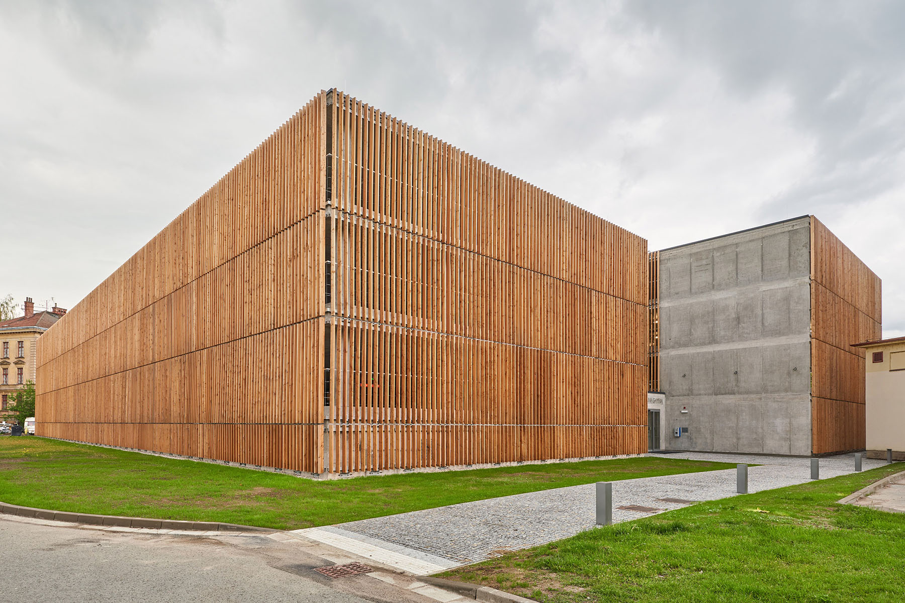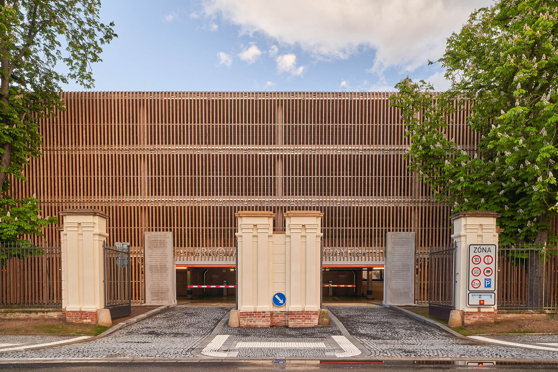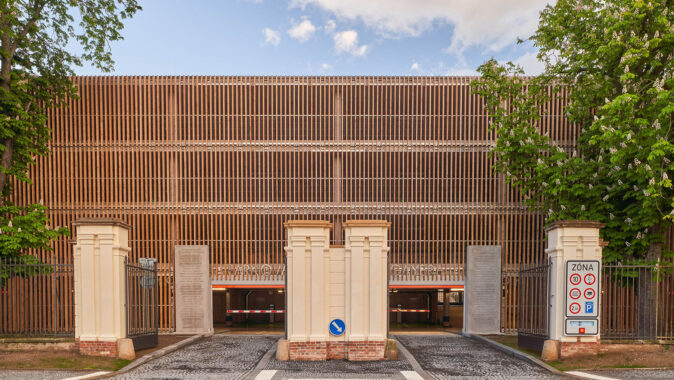 parkovací dům leží v areálu Gayerových kasáren v Městské památkové zóně Hradce