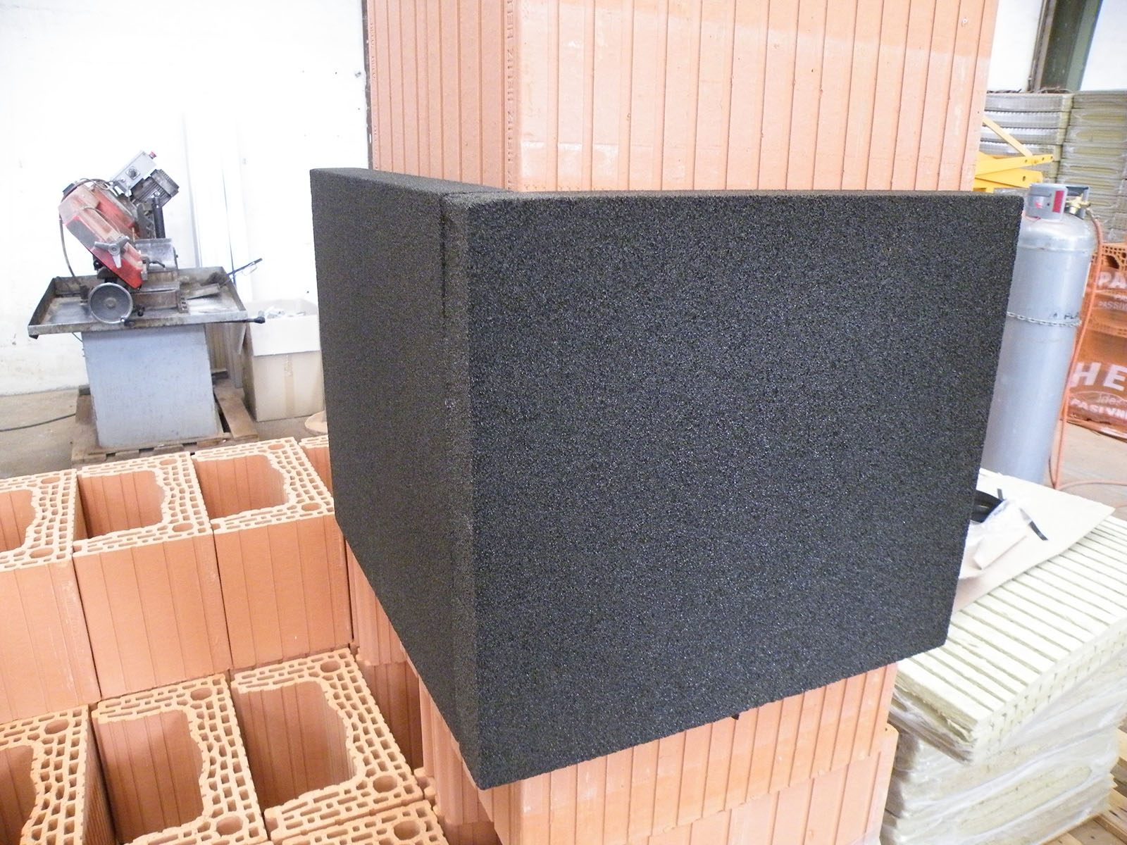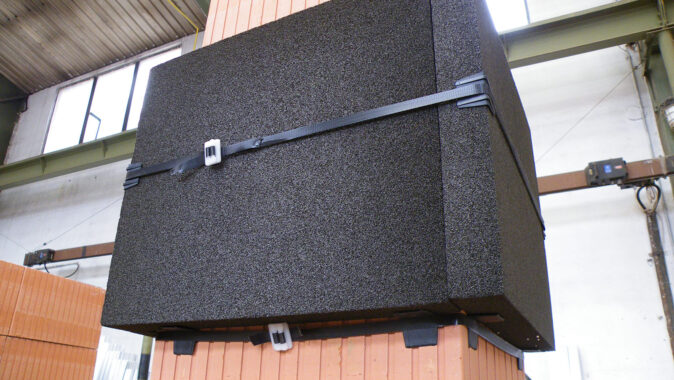 sklo Foamglas je nehořlavé, o tloušťce 50 mm, takže vytváří normou
