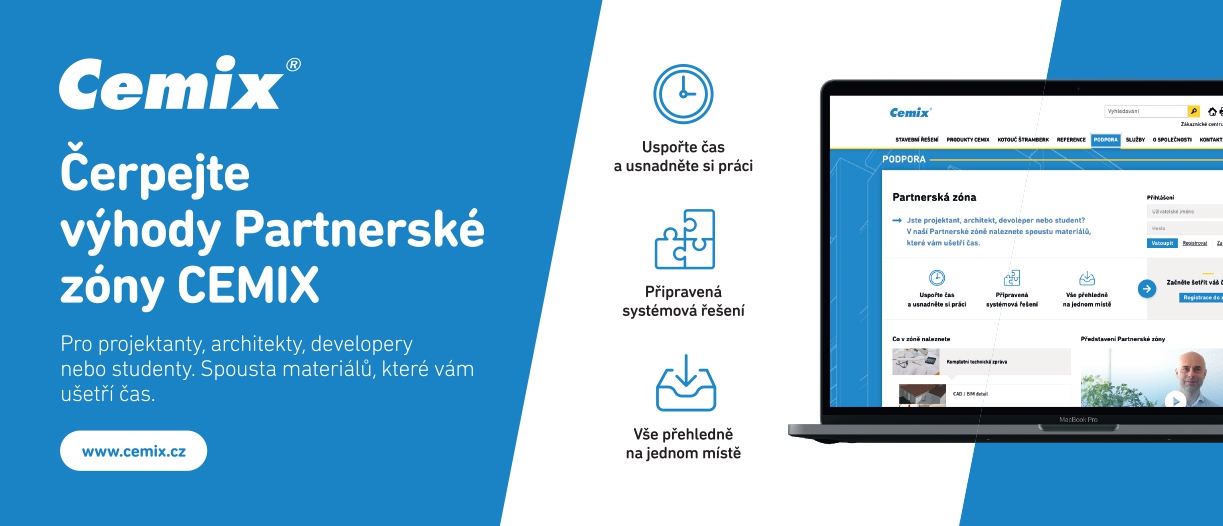 To je Partnerská zóna Cemix, váš partner pro projekty. S podporou projektových specialistů, které můžete kdykoli kontaktovat. Začněte šetřit váš čas už teď.