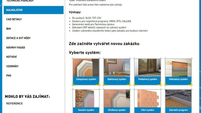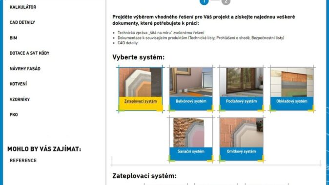 Partnerská zóna je rozdělena do logických sekcí, které umožní registrovaným uživatelům získat všechny dokumenty potřebné k práci na projektu. Systém výrazně pomůže s přípravou technické zprávy i dokumentace zásluhou přehledně dostupných podkladů, jako jsou Technické listy, Prohlášení o shodě či Bezpečnostní listy. V sekci Technické podklady stačí zvolit požadovaný systém, ať už je to zateplení, balkon, podlaha, obklad, sanace nebo omítka, a dál už je uživatel veden prostřednictvím logických kroků a „prokliká“ se ke správnému řešení.