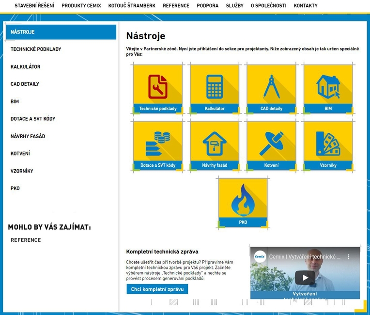Partnerská zóna je rozdělena do logických sekcí, které umožní registrovaným uživatelům získat všechny dokumenty potřebné k práci na projektu. Systém výrazně pomůže s přípravou technické zprávy i dokumentace zásluhou přehledně dostupných podkladů, jako jsou Technické listy, Prohlášení o shodě či Bezpečnostní listy. V sekci Technické podklady stačí zvolit požadovaný systém, ať už je to zateplení, balkon, podlaha, obklad, sanace nebo omítka, a dál už je uživatel veden prostřednictvím logických kroků a „prokliká“ se ke správnému řešení.