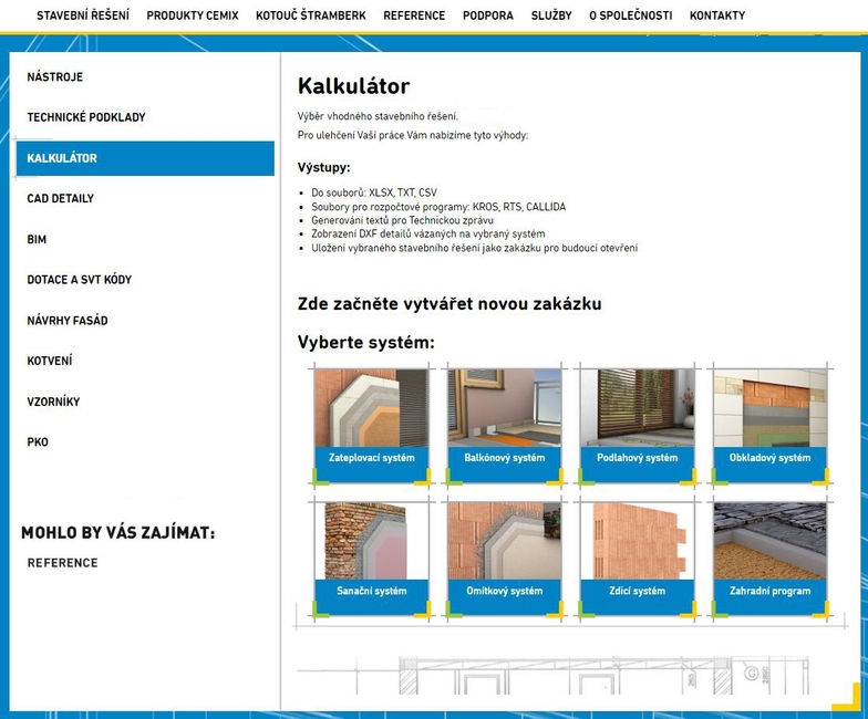 „Chtěli jsme vytvořit dynamický systém, ve kterém naši partneři najdou nejen veškeré potřebné informace o produktech CEMIX, ale ve kterém budou moci pracovat na několika projektech najednou po celou dobu realizace stavby. Jelikož víme, jak jsou v současné době složité jednotlivé detaily a napojení jednotlivých konstrukcí, připravili jsme podpůrné materiály a neustále je aktualizujeme tak, abychom drželi krok s trendy a vývojem ve stavebnictví a zároveň odpovídali normovým požadavkům a trendům. Takže rozpracované projekty je možné vždy otevřít v aktualizovaném softwaru,“ vysvětluje Karel Dutka, Product Manager společnosti LB CEMIX, jednoho z nejvýznamnějších tuzemských výrobců suchých maltových a omítkových směsí a dodavatele certifikovaných zateplovacích systémů.