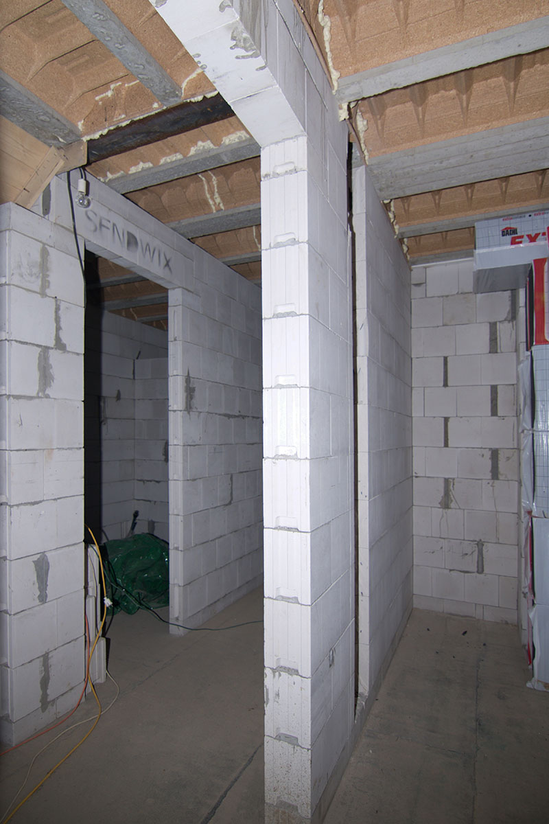 Od počátečních úvah byl dům koncipován jako objekt s velmi nízkou spotřebou energie, od čehož se odvíjí hmotové řešení domu vytvářející kompaktní tvar, umístění domu na pozemku a jeho orientace. Konceptu pasivního domu odpovídají také navržené vnitřní dispozice. Hlavní obytné prostory, obývací pokoj a ložnice, jsou orientovány na jih pro efektivní využití sluneční energie, naopak vedlejší prostory – komunikace, technické provozy a hygienická zařízení – na sever. Efektivně jsou tak rozvrženy i prosklené plochy – maximum na jih, minimum na sever. Provozně je dům rozdělen na veřejnou část v přízemí, zastoupenou hlavním obytným prostorem, a část soukromou v prvním patře, čítající 4 pokoje.