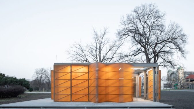 pavilonu je variabilní opláštění ze sklolaminátu.