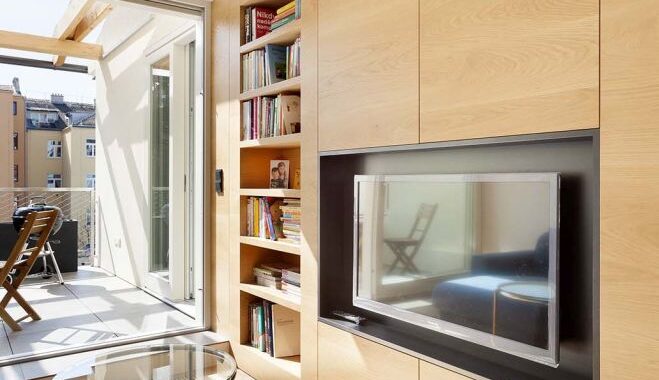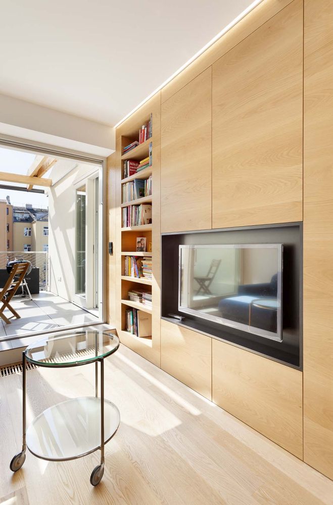 vstupem na terasu. Šatna, spižní skříň a knihovna byly vloženy do kubusu