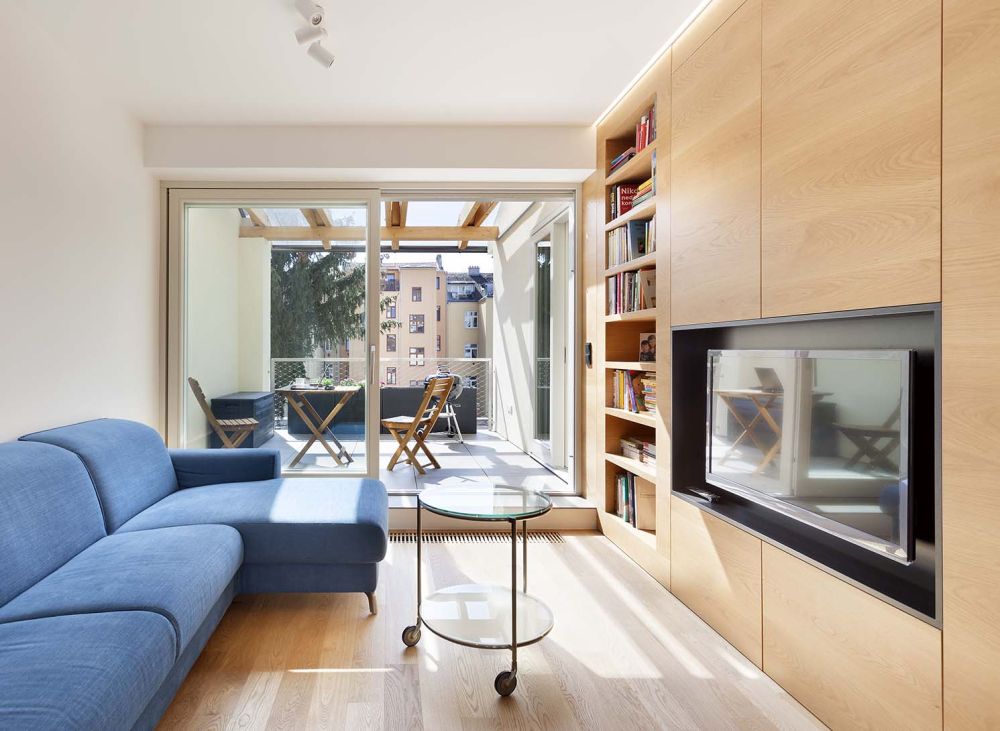 jsou vložené až do obytného prostoru s kuchyní, jídelnou, obytnou částí a