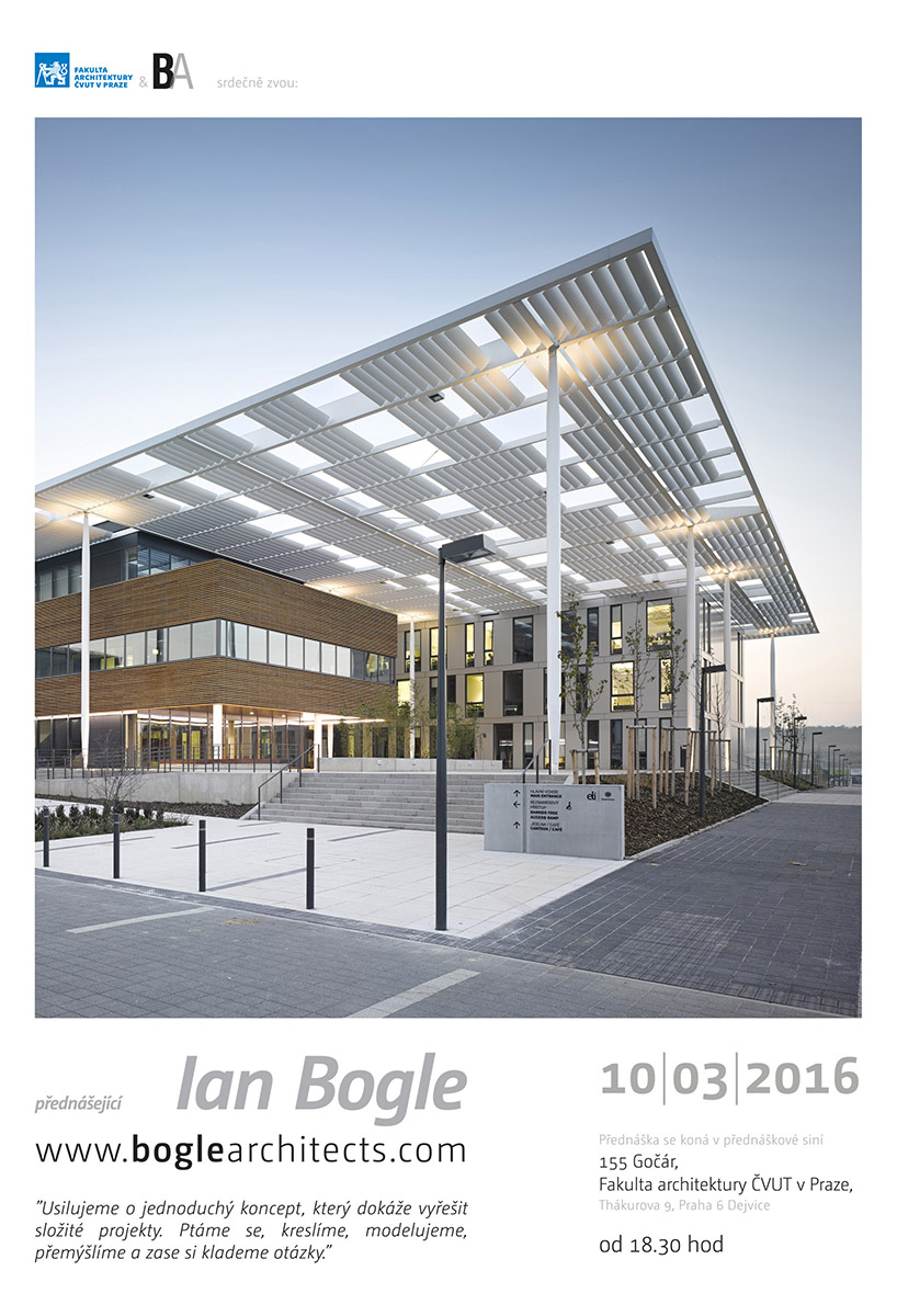 Ve čtvrtek 10. března 2016 vystoupí na FA ČVUT v Praze britský architekt Ian Bogle, jehož ateliér projektoval ELI Beamlines v Dolních Břežanech, nejmodernější laserové centrum v Evropě. Od 18. 30 hodin v přednáškové síni Gočár, Fakulta architektury ČVUT v Praze, Thákurova 9, Praha 6 – Dejvice. Přednáška je v anglickém jazyce, vstup je volný a bezbariérový.