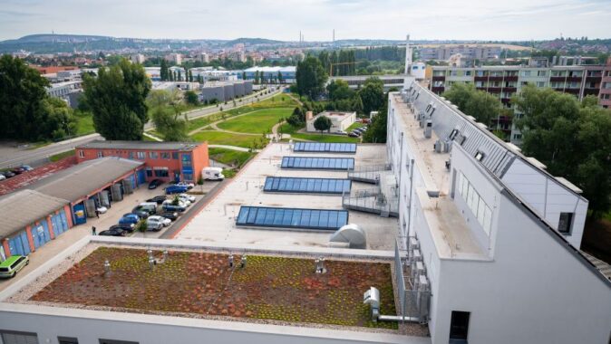 Podobně jako výsadba nové zeleně fungují i zelené prvky na samotných budovách. Funkční zelená střecha či fasáda absorbují mnohem méně slunečních paprsků než betonový povrch, navíc pomáhají odebírat teplo ze svého okolí. „Zelená fasáda či střecha zároveň snižuje energetickou náročnost budovy, která se díky ní tolik nevyhřívá a snižují se tak například náklady na klimatizaci kanceláří či bytů,“ sdělil technický správce Inovačního centra SVATOPETRSKÁ v Brně Vlastimil Rieger.