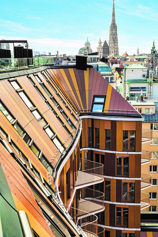Penthouse N°10 se nachází v prvním vídeňském okrese, který je proslulý svou skvělou historií a bohatým kulturním životem. Architekti vytvořili nevšední, luxusní rezidenční a administrativní budovu s působivou fasádou v místě, které je obklopeno historickými budovami, jen pár minut chůze od jedné z nejvýznamnějších rakouských gotických památek – Katedrály svatého Štěpána. Symetricky zakřivená fasáda pokrytá hnědými a zlatými panely dává tomuto objektu živý vzhled a vyjadřuje jeho vlastní identitu.