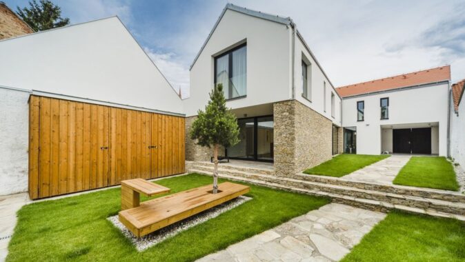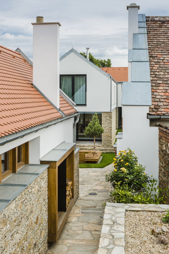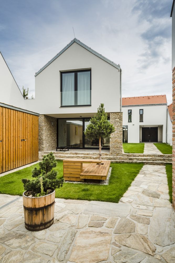 Při návrhu jsem se snažil spojit moderní přístup k návrhu domu v historickém prostředí tak, aby nepůsobil jako vetřelý novotvar, ale zároveň aby si ponechal určitou míru moderní integrity.