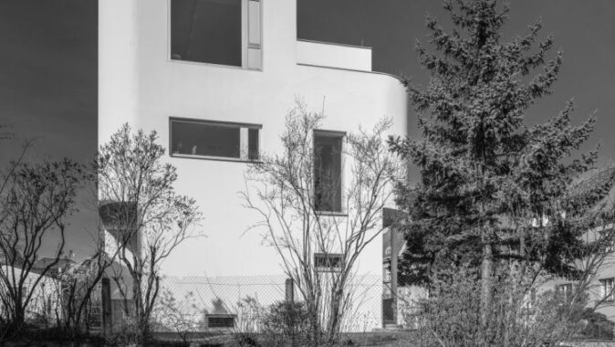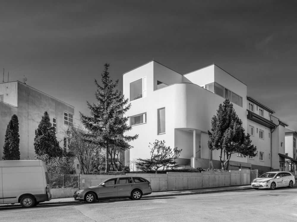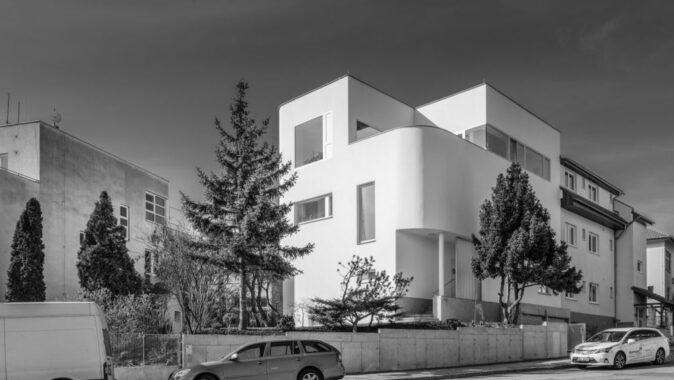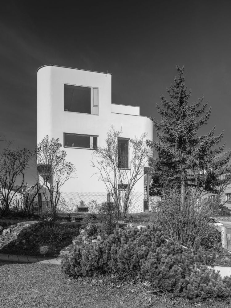 Do hmoty nově navrženého domu byl zapojen zaoblený balkon