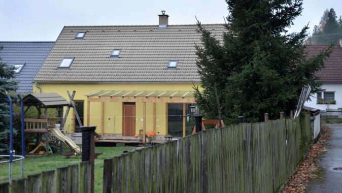 jsme narazili na dům v Podlesí, jehož poloha na kraji lesa nám učarovala.