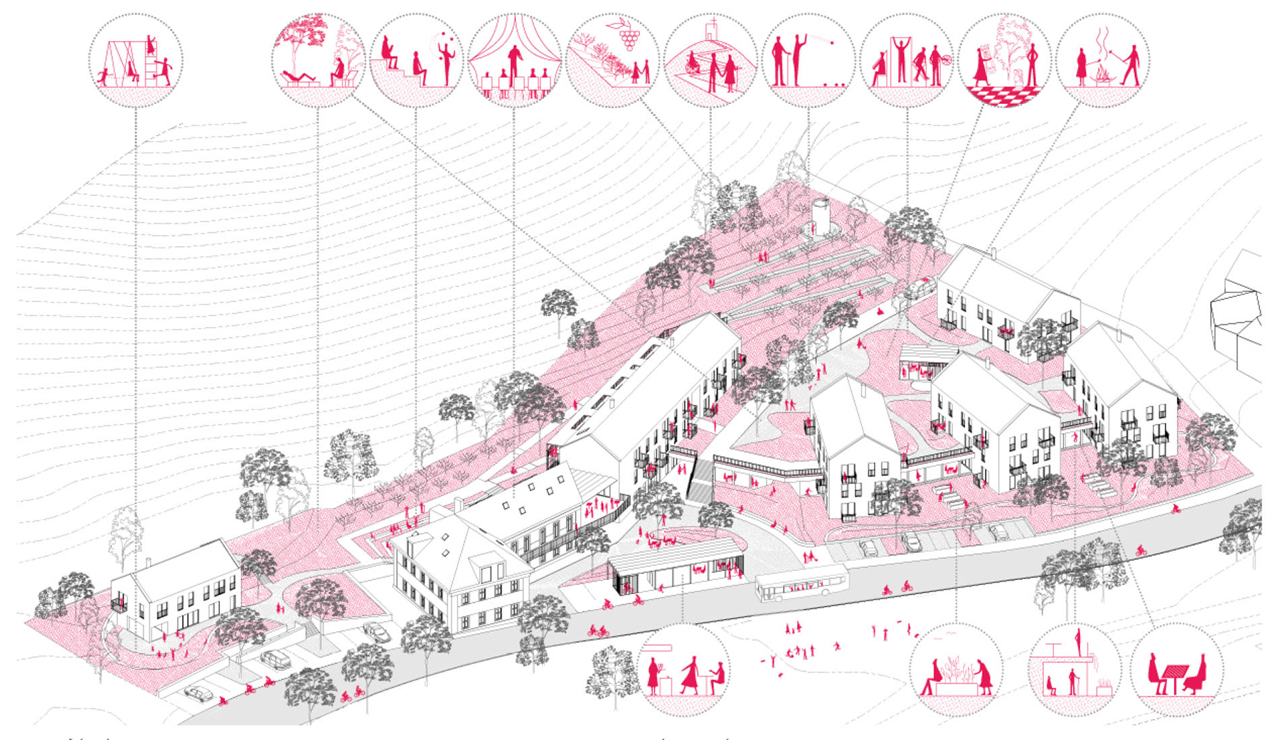 pro seniory, komunitními prostorami pro veřejnost nebo bufetem.