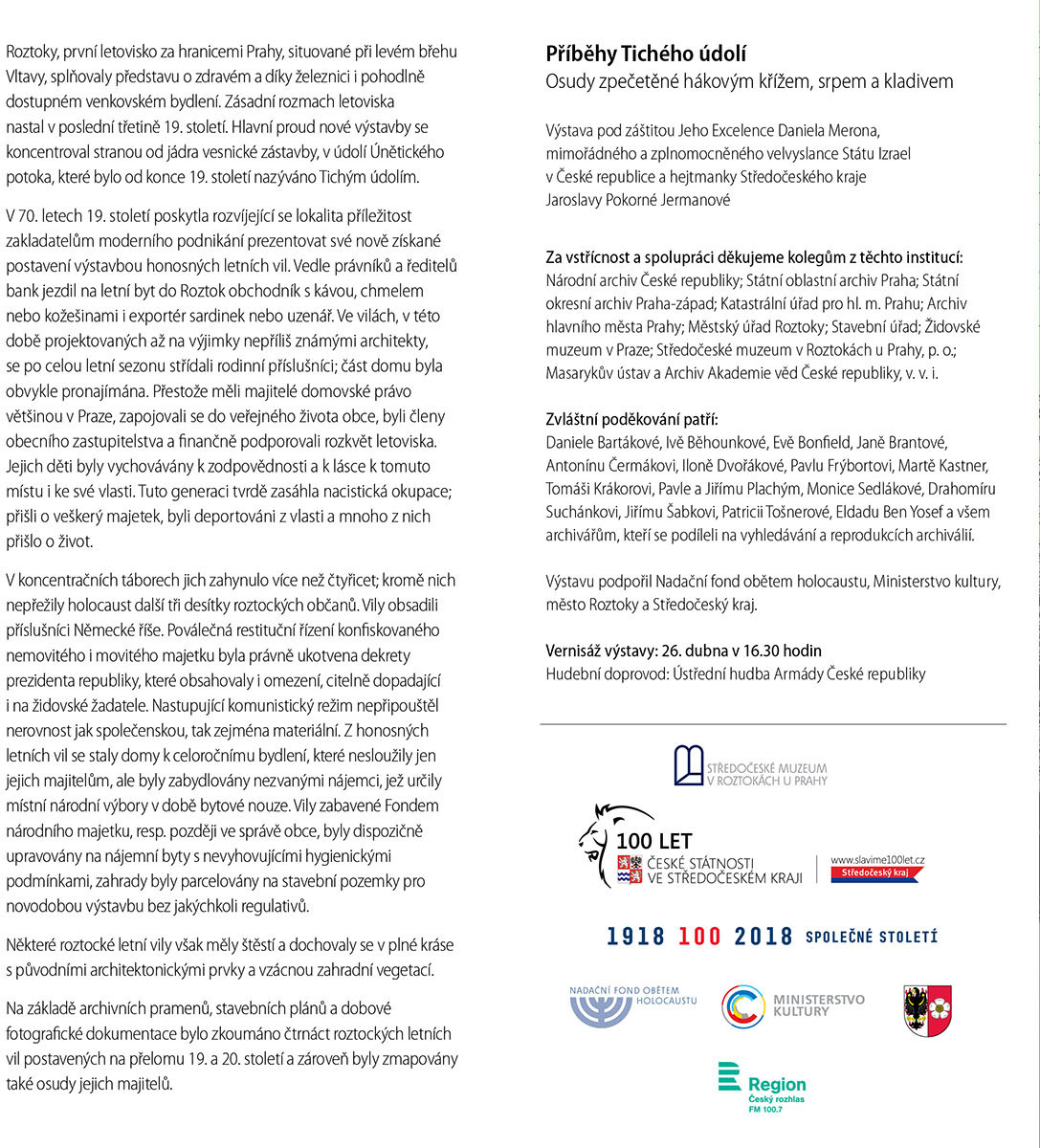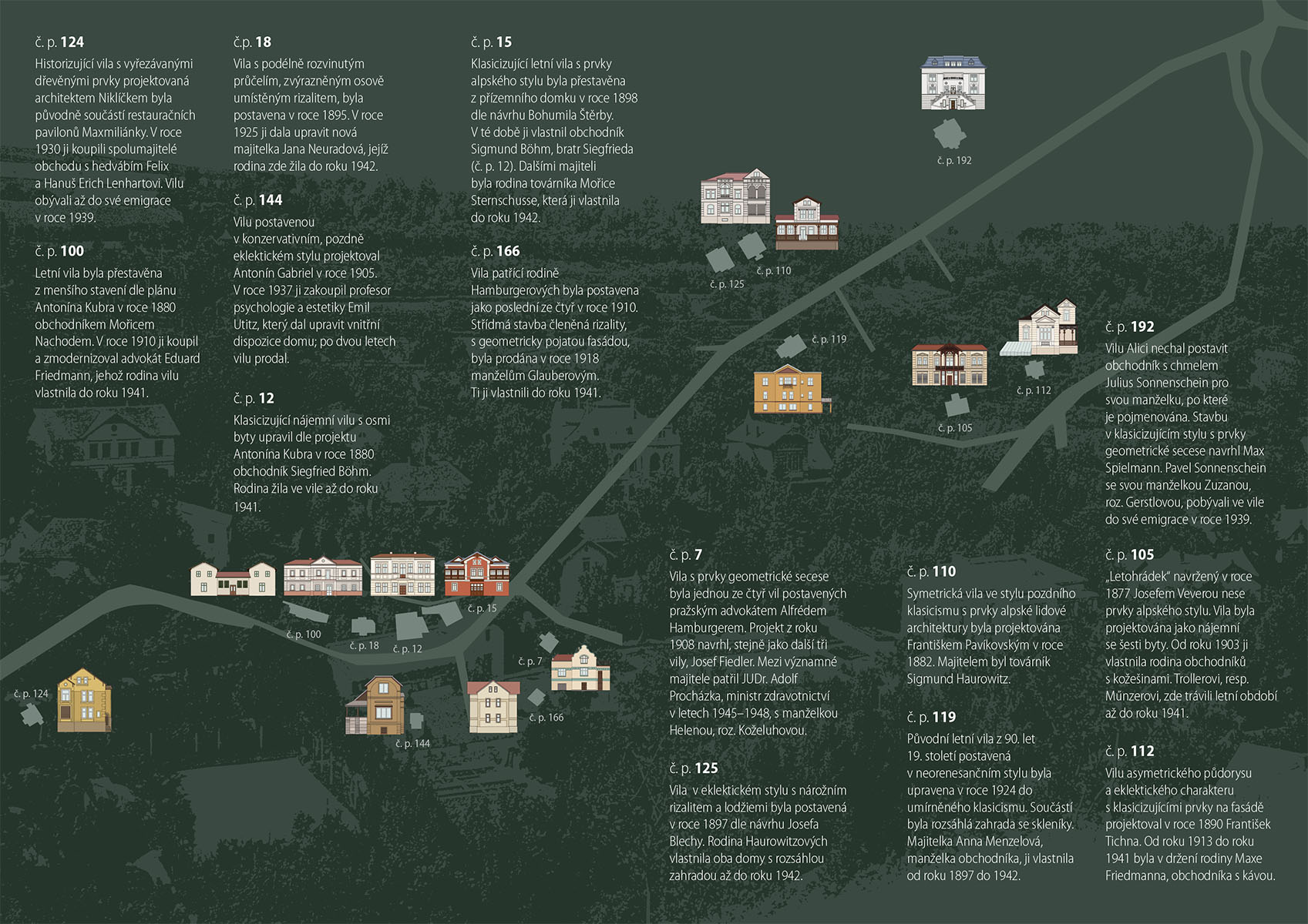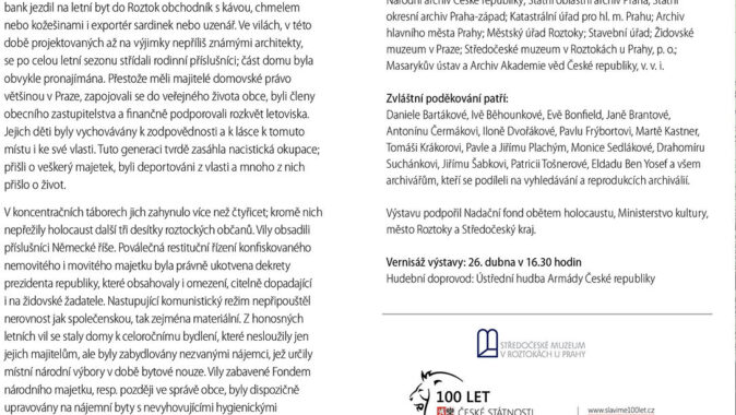 v Roztokách, ale mapuje osudy zejména židovských stavitelů,