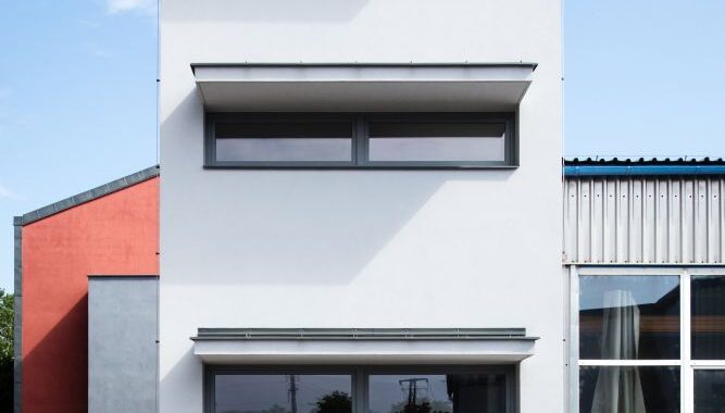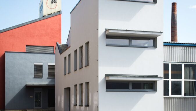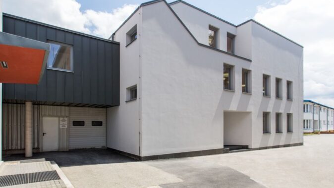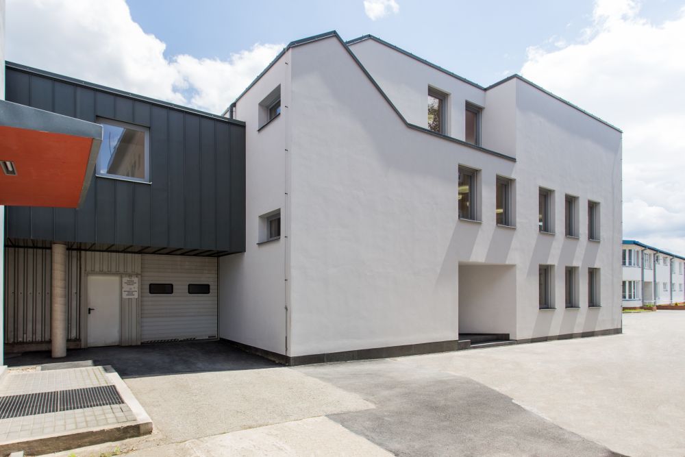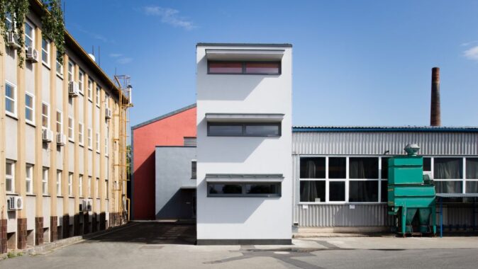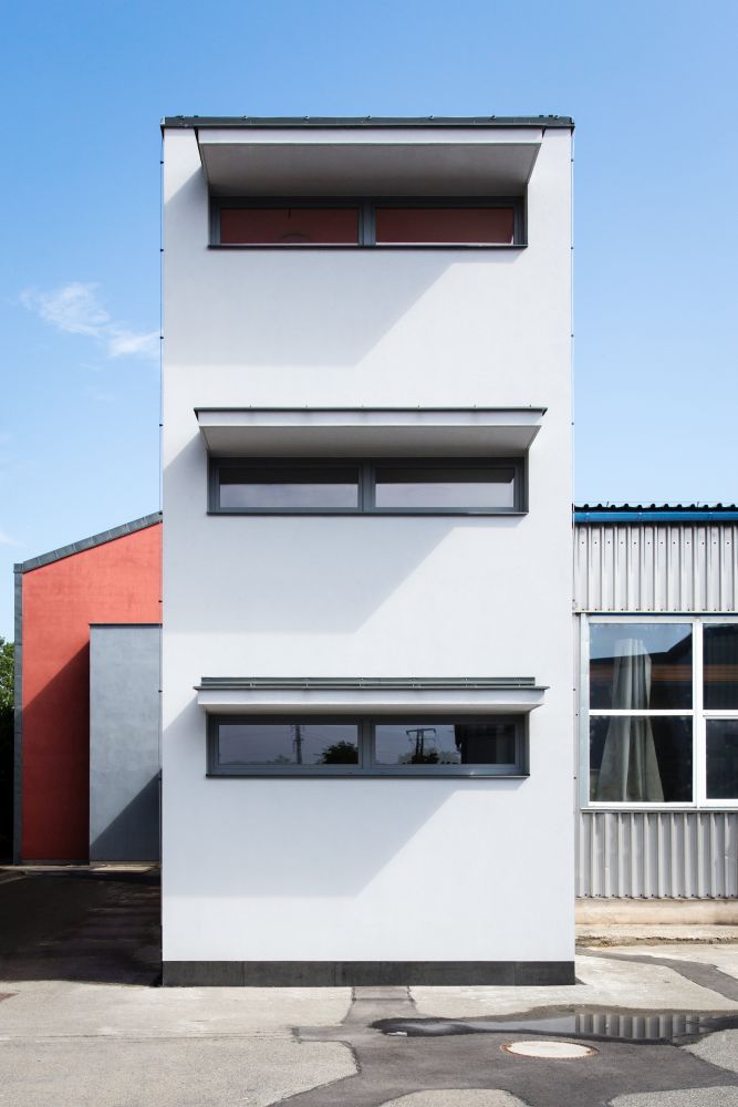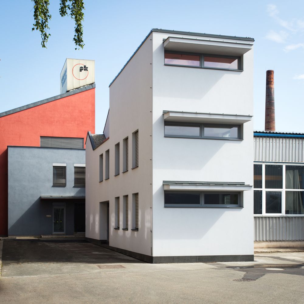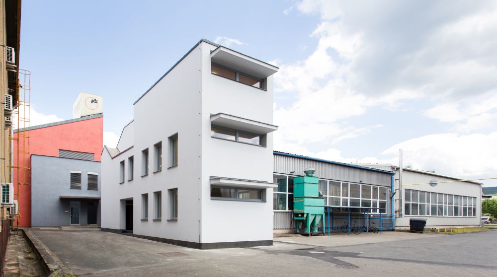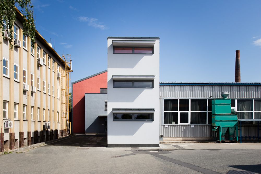 Novostavba je přístavbou a rozšířením stávajících prostor firmy, která se zabývá se výrobou průmyslové keramiky. Je součástí průmyslového areálu, který tvoří nesourodý shluk administrativních objektů. Navazuje na dřívější zdařilou přestavbu, kterou stavebník realizoval v roce 2003 (administrativní budova s červenou fasádou, architekti Michaela Kryštofová a Jiří Marek).