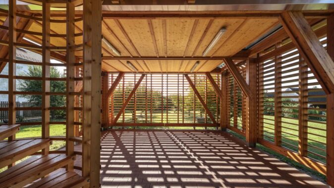 Ke starému statku v jižních Čechách si investor přál prostor pro odpočinek a relaxaci – hvězdárnu a pozorovatelnu. Prodloužili jsme hmotu jednoho křídla statku o poloprůhlednou dřevěnou konstrukcí ze smrku a modřínu. Přístavba je v základním tvarovém konceptu harmonickým pokračováním původního domu, ale ve struktuře a konstrukci kontrastní transparentní dřevostavbou se zenovou atmosférou.