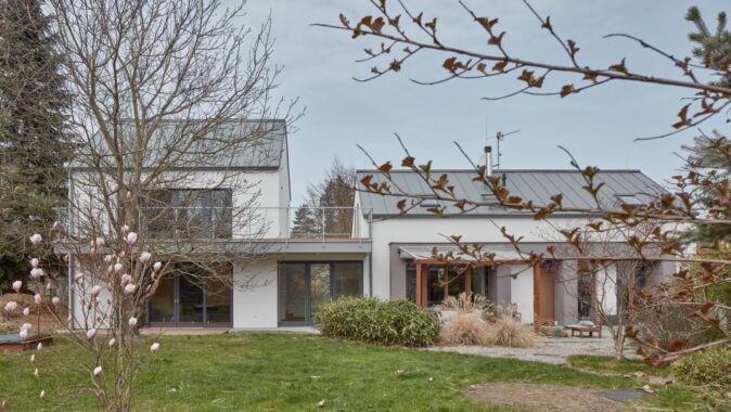 nimi. Navrhli jsme přístavbu, která navazuje na stávající dům, avšak nové