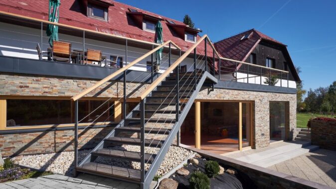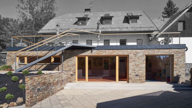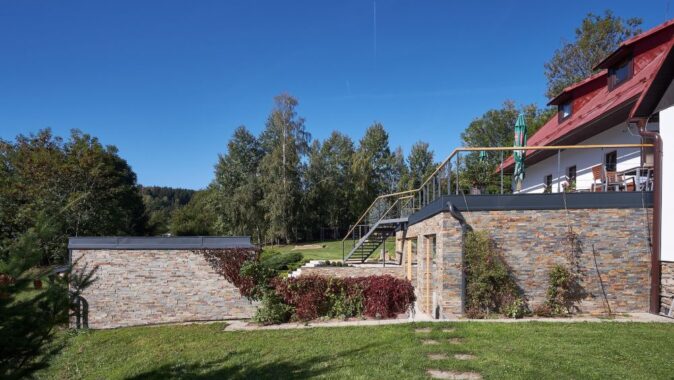 Přístavba penzionu v podhůří Šumavy je umístěna čtyři kilometry od vrcholu Javorníku. Stavba řeší chybějící společenský prostor v penzionu a potřebu rozšíření malé kapacity stávající terasy.