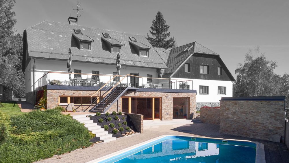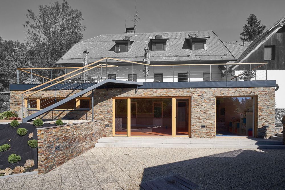 Přístavba penzionu v podhůří Šumavy je umístěna čtyři kilometry od vrcholu Javorníku. Stavba řeší chybějící společenský prostor v penzionu a potřebu rozšíření malé kapacity stávající terasy.