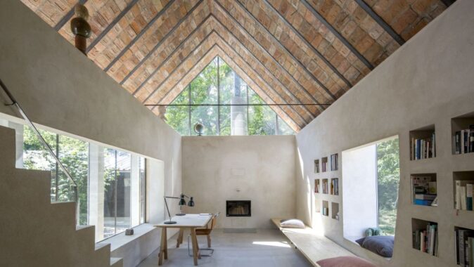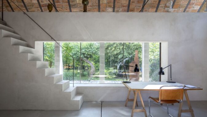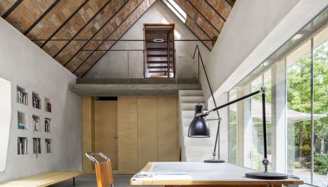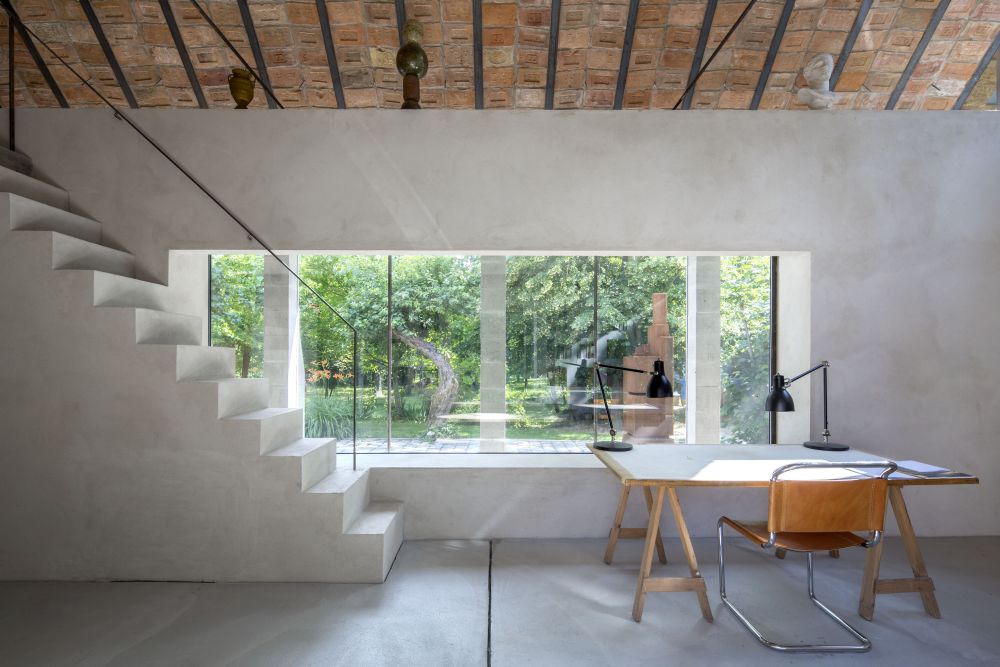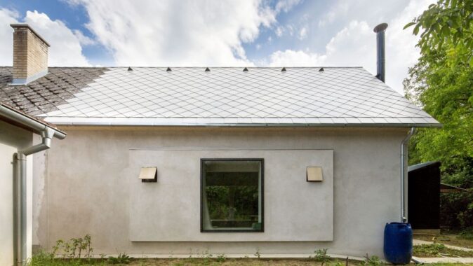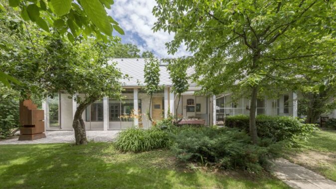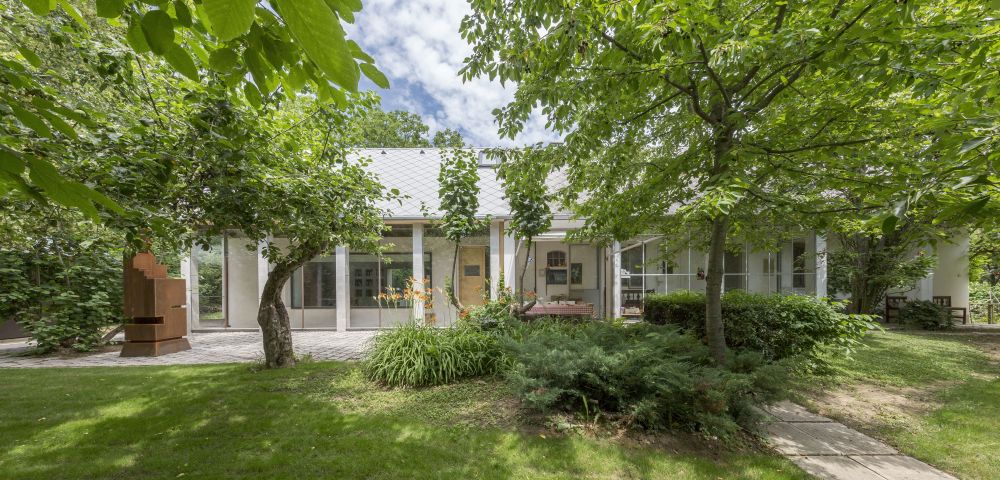 Soubor staveb stojí v rozsáhlé zahradě. Dům, k němuž se přístavba přimyká, má typickou siluetu venkovského stavení se sedlovou střechou. Jedná se o tzv. portikový dům, na Slovensku velmi rozšířený. Po delší straně má několik sloupů, takže vzniká jakási otevřená předsíň či veranda. Kromě přirozené ochrany frekventované zóny příznivě reguluje různé režimy letního (vysokého) a zimního (nízkého) slunce a jeho vliv na zděné stěny domu.
