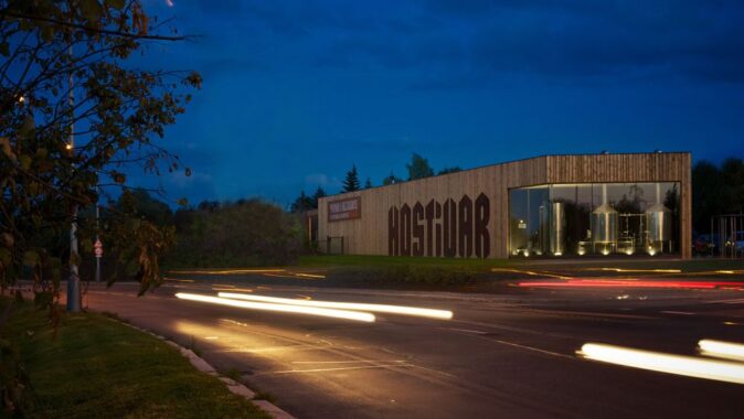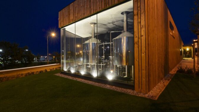 Objekt pivovaru reflektuje tvar pozemku, na kterém se