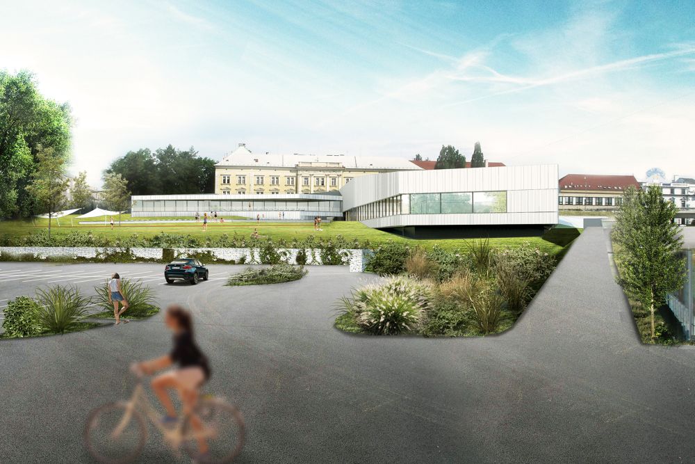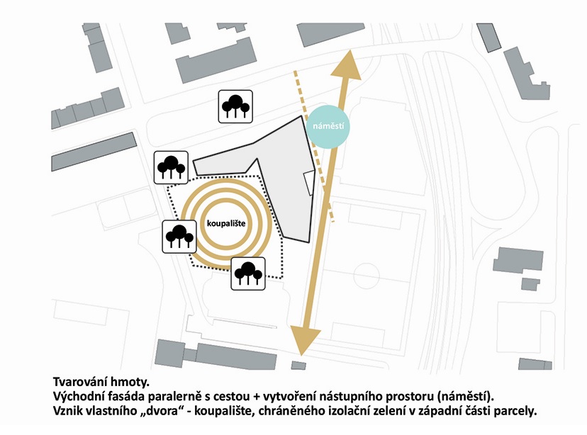 Hodnocení poroty: Návrh obsahuje dispozičně kvalitní řešení a to jak vnitřních prostor bazénu tak i jeho venkovní části. Dispozičně je návrh bezbariérový. Návrhem je prokázaná bezkolizní etapovost výstavby. Koncepce uložení objektu – resp. jeho hmota svou modelací vytváří polouzavřený jihozápadní venkovní prostor, který je tak ochráněn od sousedních rušných komunikací. Návrh obsahuje kvalitní technologicko dispoziční řešení. Dopravně je projekt kvalitně zvládnutý. Nedostatek byl shledán ve vnějším výrazu budovy. Její materiálové, technické a výrazové řešení obvodového pláště není adekvátní typu a funkci budovy.