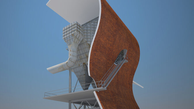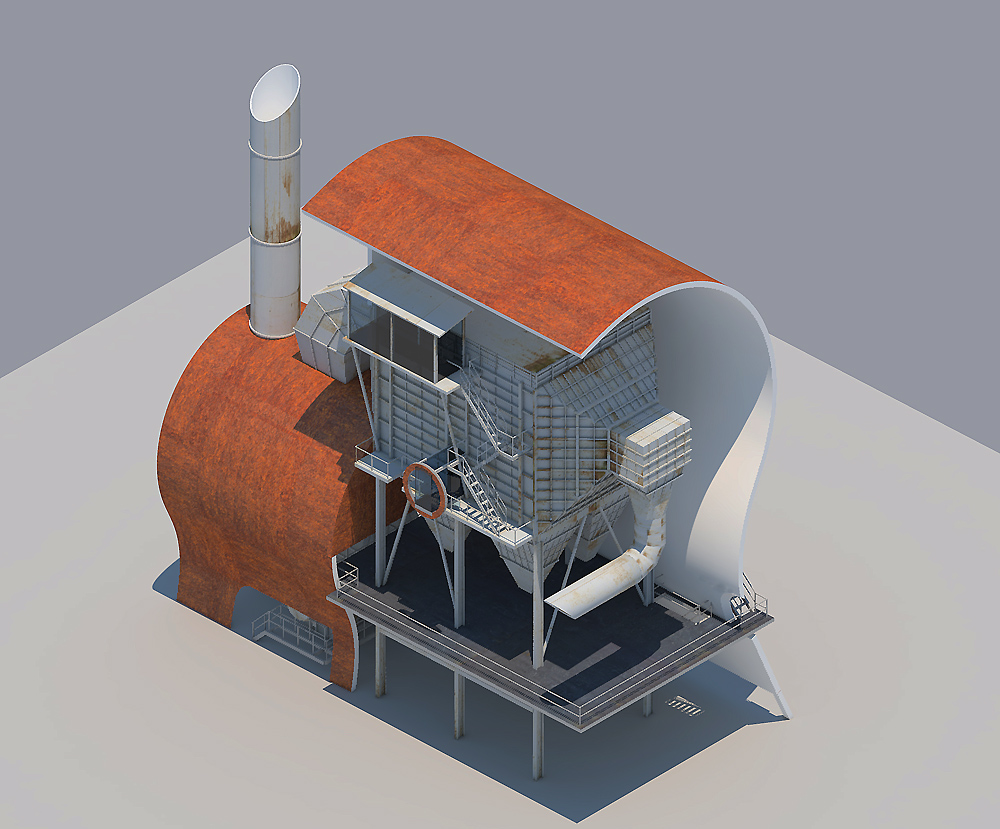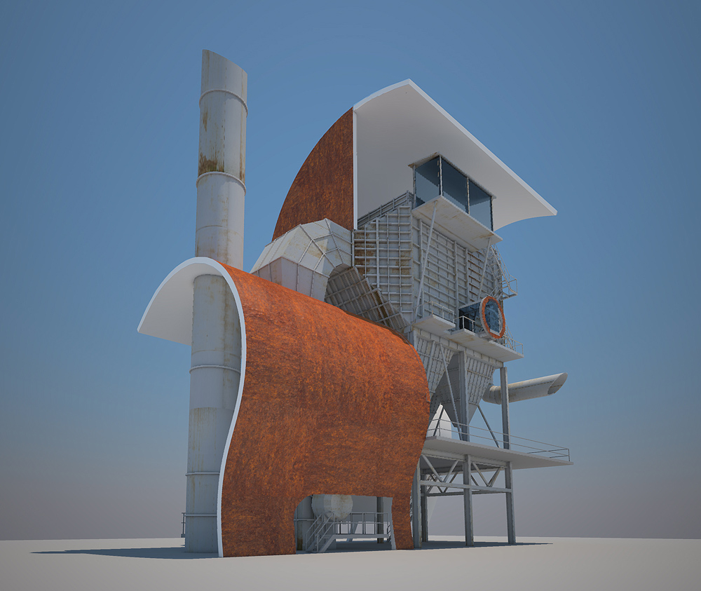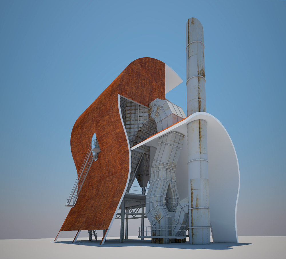 Co nejjednoduším způsobem a pro Dolní Vítkovice nejpřirozenějším materiálem vytvořit pro stávající filtrační jednotku nové objekto-prostorové řešení, které zdůrazní její technologickou krásu a zároveň vloží do bezprostředního okolí neobvyklé prvky-tvary podřízené abstraktním estetickým a proporčním pravidlům, odlišným od utilitárního technologického designu metalurgického průmyslu.