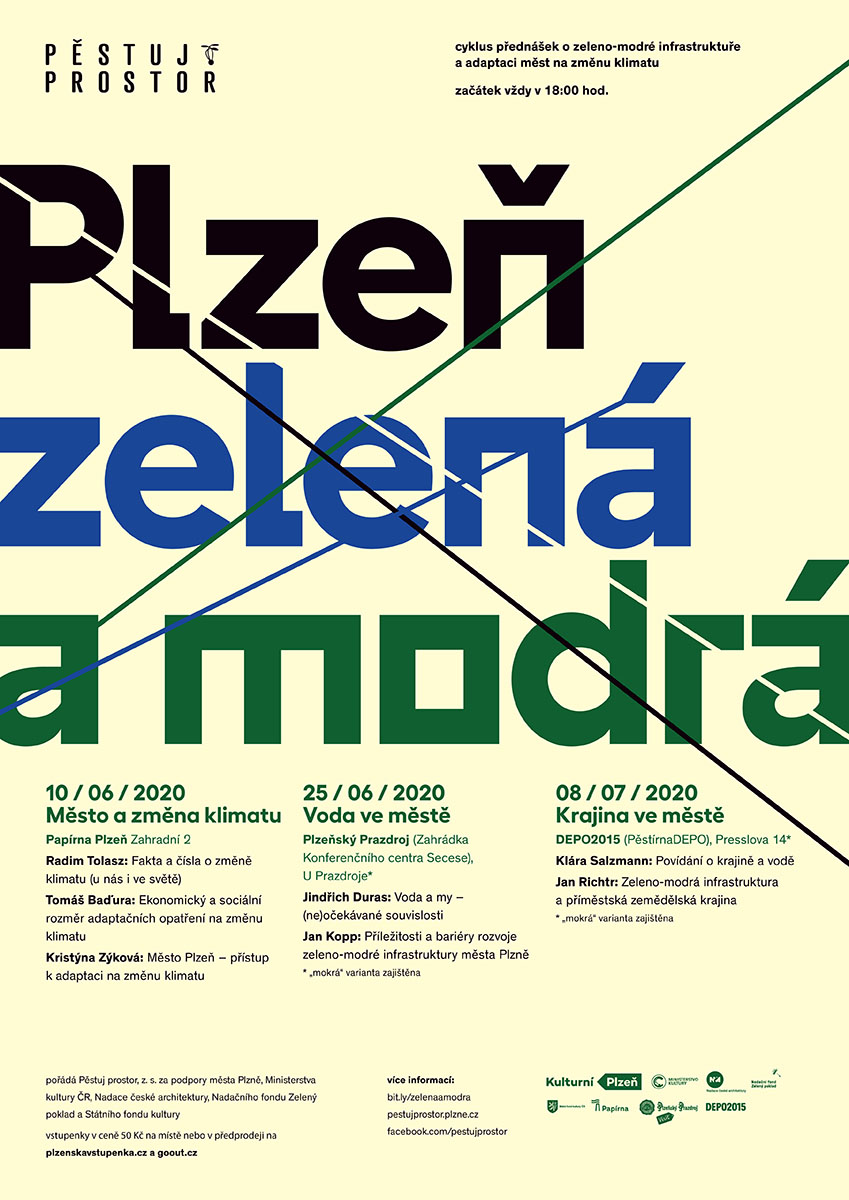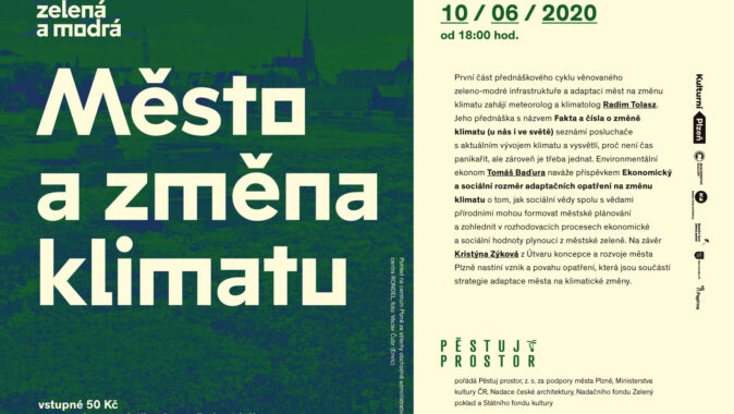 V posledních letech je v ulicích (nejen) Plzně stále tepleji. V souvislosti s tím se stává velmi aktuálním téma adaptace měst na změnu klimatu a tzv. zeleno-modrá infrastruktura. Zabývat se jím bude i přednáškový cyklus „PLZEŇ ZELENÁ A MODRÁ“ pořádaný spolkem Pěstuj prostor. První část série, s podtitulem „Město a změna klimatu“, proběhne ve středu 10. června 2020 od 18 hodin v Papírně Plzeň. Se svými příspěvky vystoupí klimatolog a meteorolog Radim Tolasz, environmentální ekonom Tomáš Baďura a zástupkyně Útvaru koncepce a rozvoje města Plzně Kristýna Zýková.