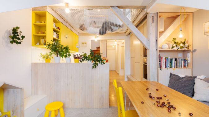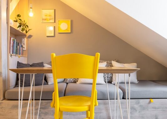 Tmavý, malý a až stísněný prostor… I tak by se dalo popsat jedno vršovické podkroví před tím, než prošlo kompletní rekonstrukcí v naší režii. Cílem bylo pozvat do tohoto bytu více slunce – a to ve všech myslitelných rovinách.