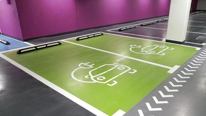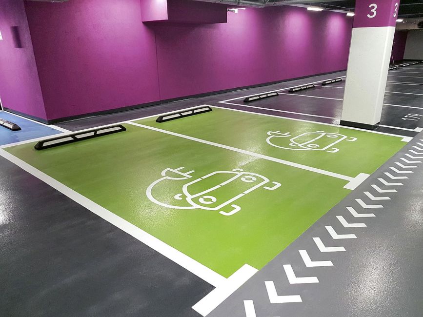Povrchovou vrstvu podlahy ze syntetické pryskyřice u PU systému Deckshield lze provést v libovolné barvě dle vzorníku RAL nebo NCS. Tento velmi jednoduchý a oblíbený způsob je jedním z řešení, jak vizuálně odlišit parkovací místa, příjezdové cesty a chodníky pro pěší v garážích nebo na otevřených parkovacích stáních. Stejný postup značení se používá také na kompaktní epoxidové podlaze s barevným křemičitým pískem Peran STB Compact nebo Flowcoat SF41.