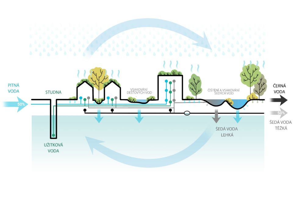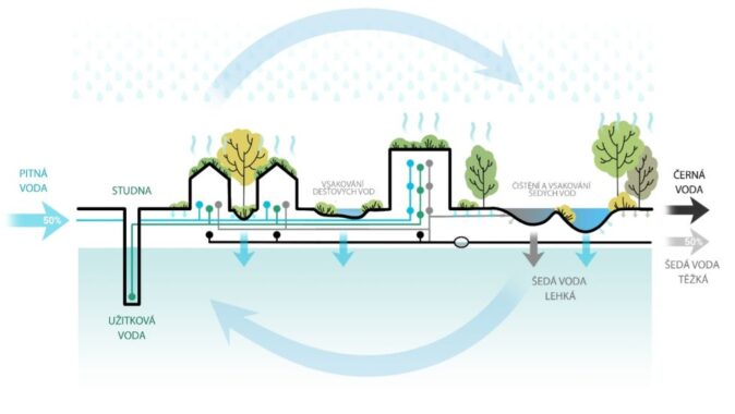 „Čištění je možné různými způsoby. Mezi ty nejprogresivnější z hlediska celkových dopadů na životní prostředí lze zařadit například kombinaci mechanického filtru ve formě síta a zároveň biofiltru umístěného v zemi. Takto vyčištěná voda může být následně zasáknutá do podzemních vod a připravená k dalšímu využití. Řešení postavené na tomto principu aktuálně plánujeme ve čtvrti Líchy v jihomoravských Židlochovicích. Našim cílem je i díky dalším komplexním opatřením dosažení úspory padesát procent pitné vody spotřebované na území a padesát procent odpadní vody odváděné z území. To by mělo vést k vytvoření lokálního koloběhu vody uvnitř celé čtvrti,“ naznačil míru dalších úspor vody Karel Plotěný z odborné skupiny Odvodňování urbanizovaných území Asociace pro vodu ČR.
