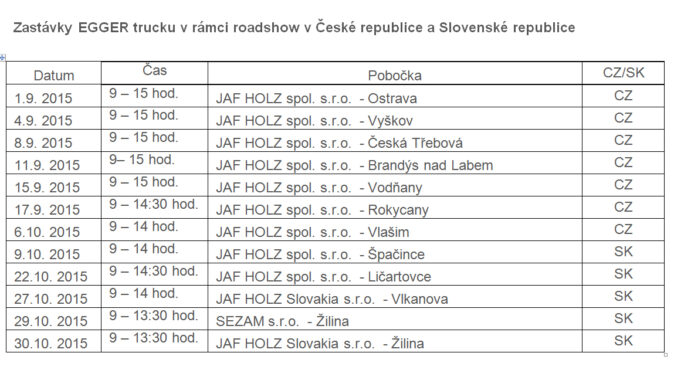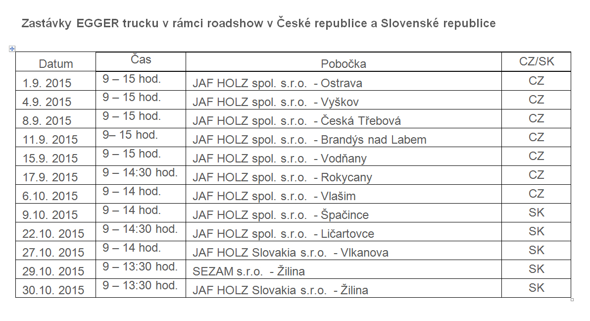 Zastávky EGGER trucku v rámci roadshow v České a Slovenské republice