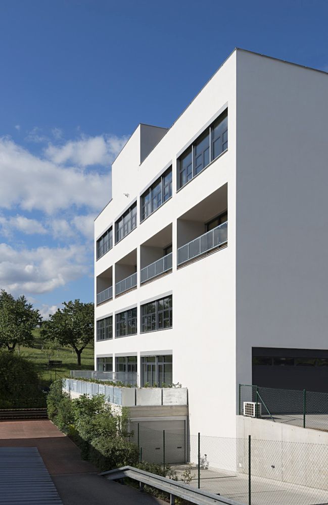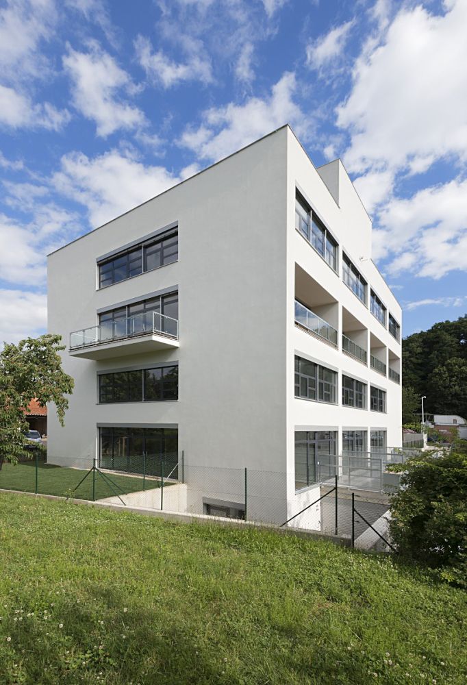 Vstup a vjezd na pozemek je z jižní strany z ulice Pod Stárkou. Stavba má jedno podzemní a pět nadzemních podlaží. Poslední podlaží bylo navrženo jako ustupující. 1. PP je využito kromě garáží (14 stání) jako technické zázemí objektu, 1. NP tvoří garáž (4 stání), letní pracovna, dva ateliéry a byt, 2. NP je využito pro administrativu, ve 3. NP se nachází pět bytových jednotek. Ve 4. NP jsou dva byty a v 5. NP ateliéry navazující na byty ve 4. NP.