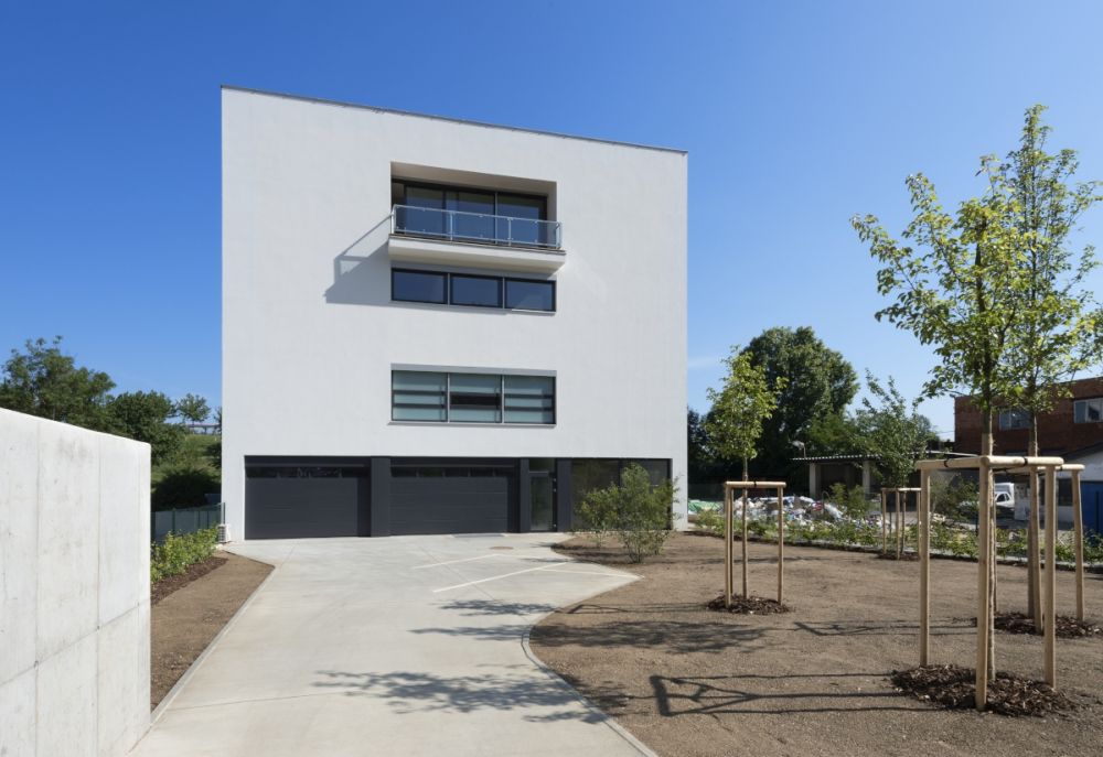 zahradě. Konkrétně na vilu z první poloviny 20. století a sousední z 90.