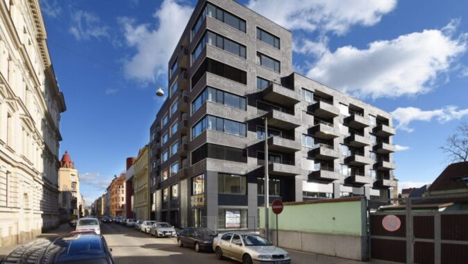 profily. Hmota osmého patra je výškovým akcentem nově vzniklého nároží