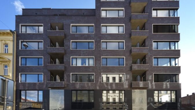 nové městské třídy. Dům je osmipatrový s jedním podzemním podlažím. Má