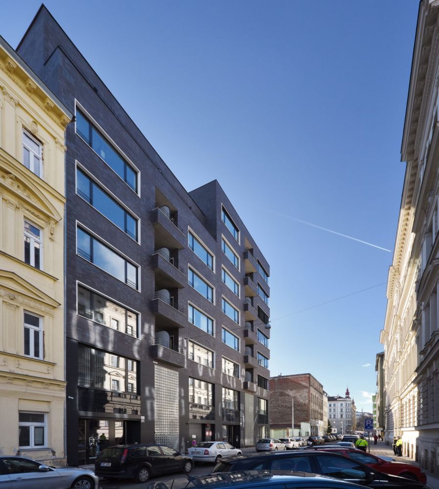 původní zástavbě činžovních domů. Dům respektuje uliční čáru ulice