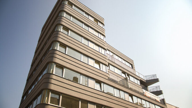 zajímavý polyfunkční dům podle návrhu architekta Zdeňka Fránka. S trochou