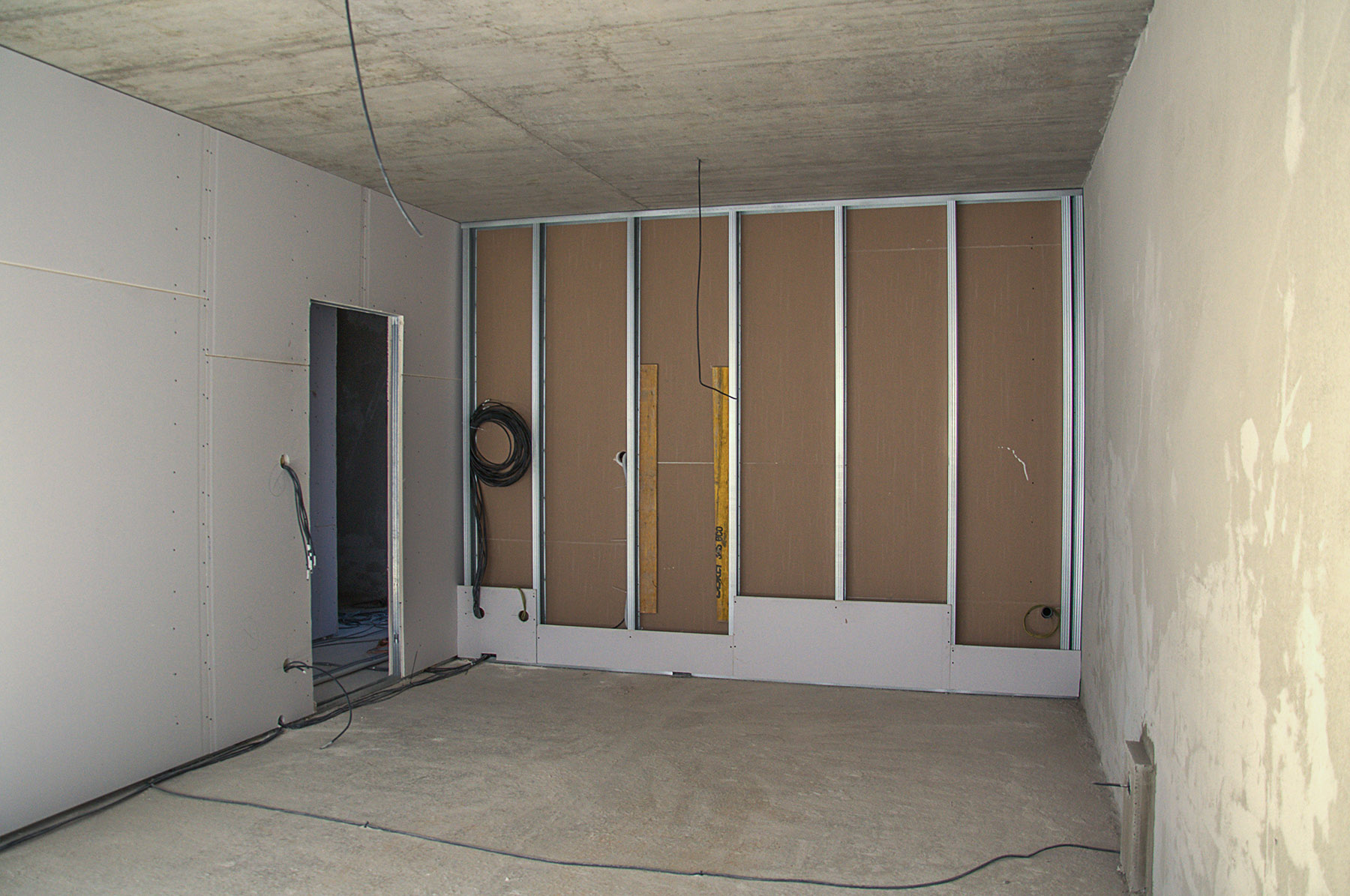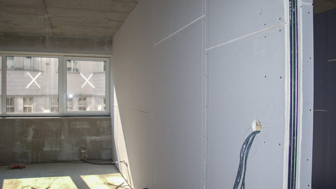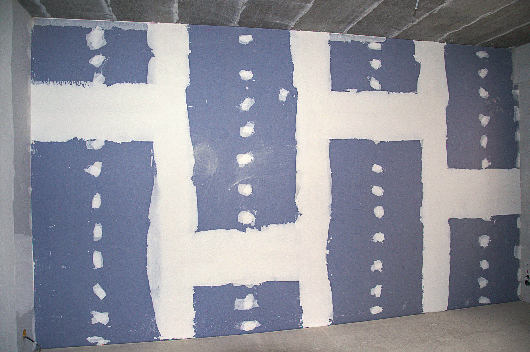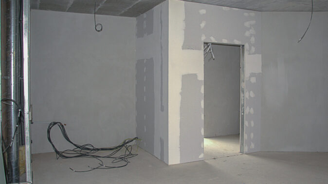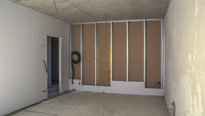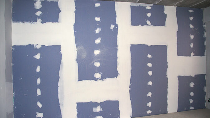 bytové příčky byly použity sádrokartonové Modré akustické desky, které řeší