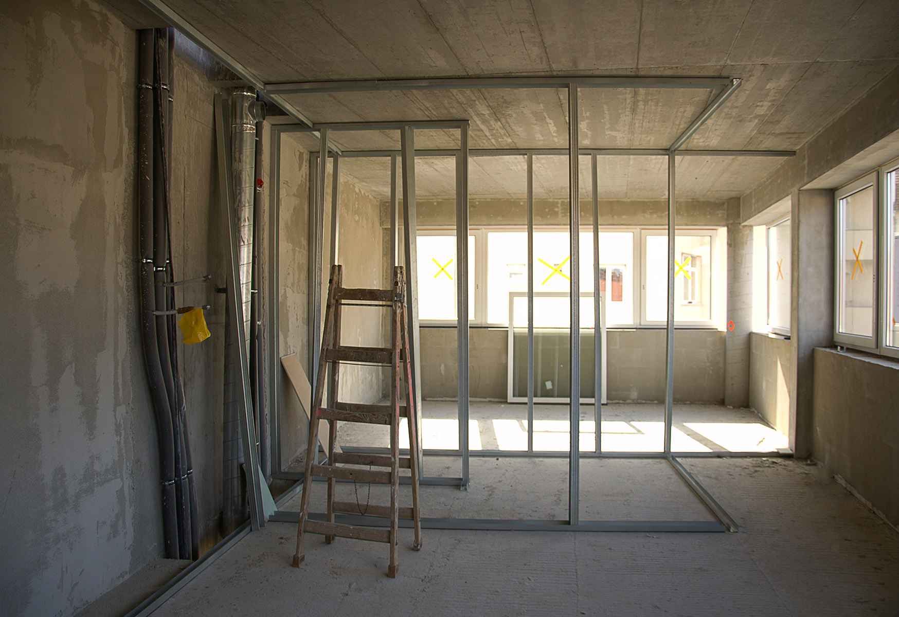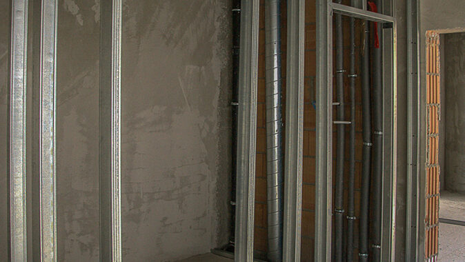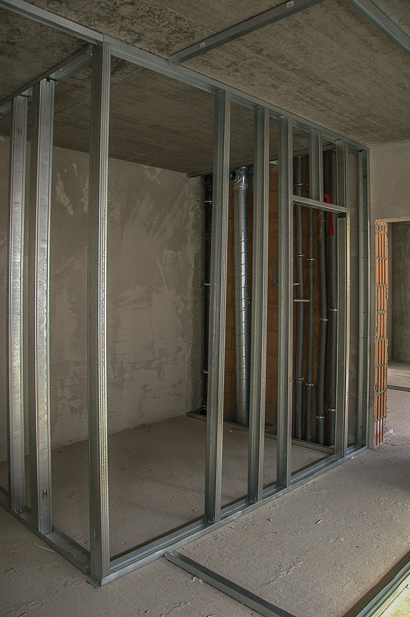 sádrokartonové konstrukce, celkem použila v tomto domě cca 8 000 m²