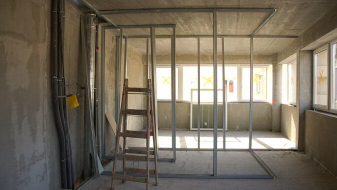 použitím sádrokartonových příček včetně mezibytových za dodržení veškerých