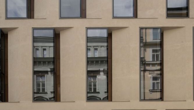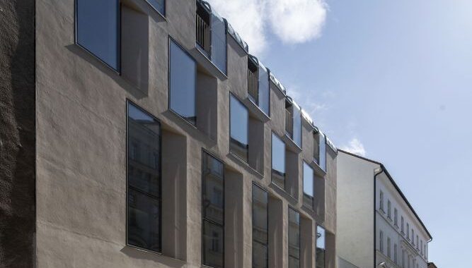 převážně klasicistní fasády, které jsme se pokusili interpretovat abstrakcí