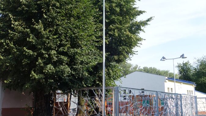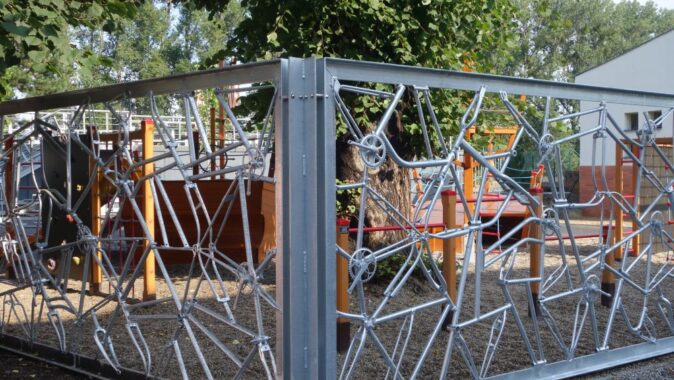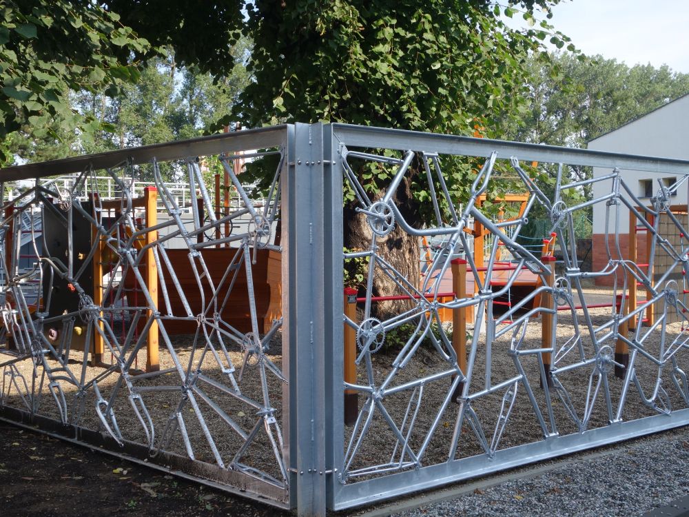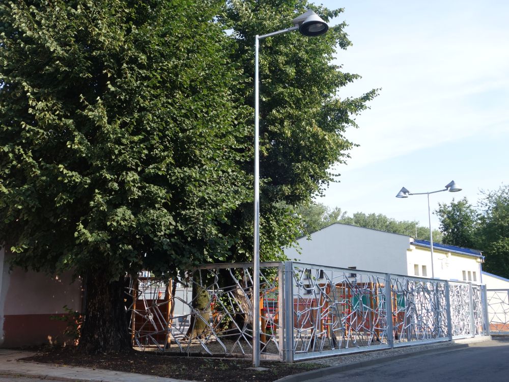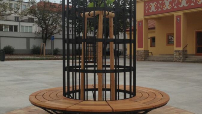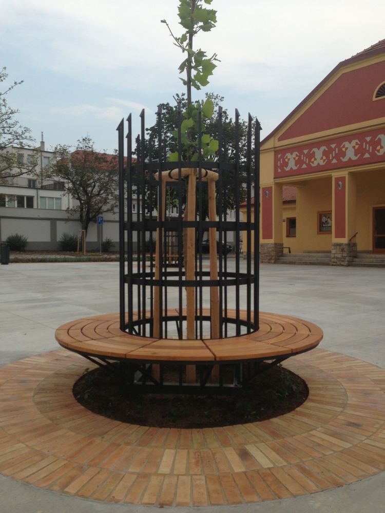 pojízdného chodníku. Výška sloupů je stejná jako koruny fasád spořitelny.