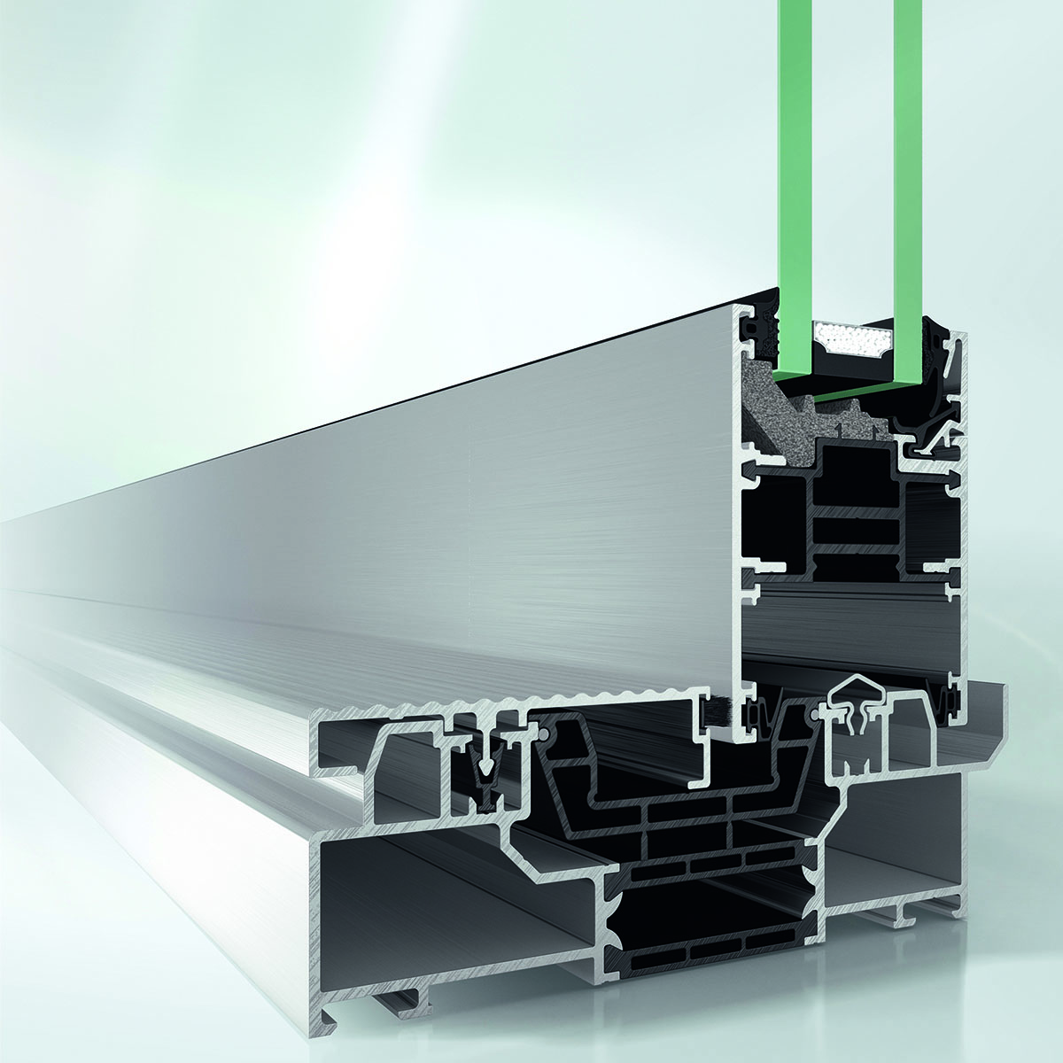 Schüco ASE 80.HI, který umožňuje použití izolačního skla o tloušťce až 60 mm.