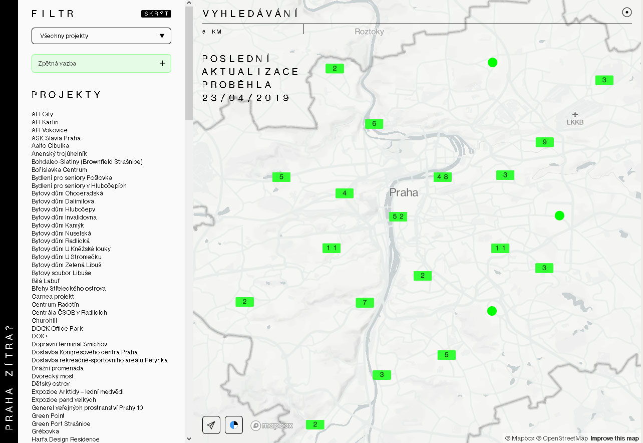 budoucnosti vzniknou v Praze. Na webu naleznete celkem 184 projektů v